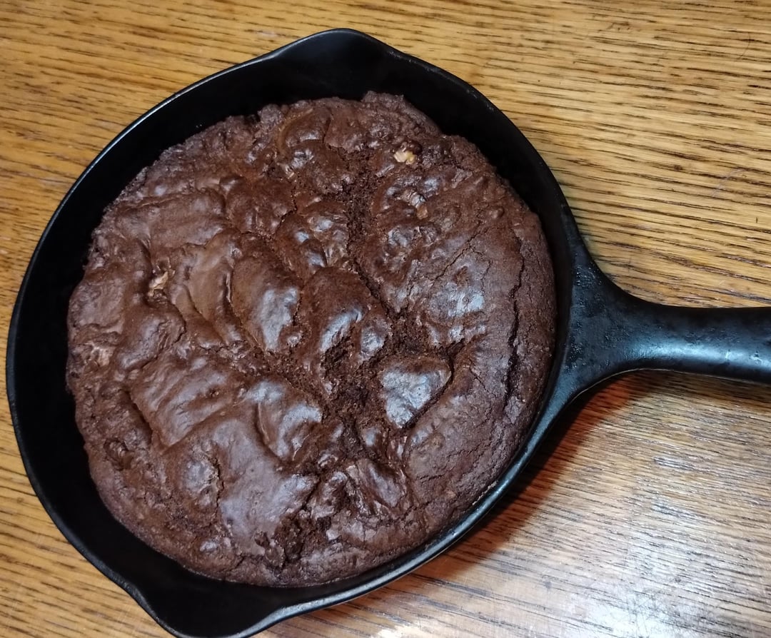 Solo easy TGIF dinner- Grilled porkchop & steamed white rice. Cast iron brownie. [homemade] by Catfish_Mudcat Food