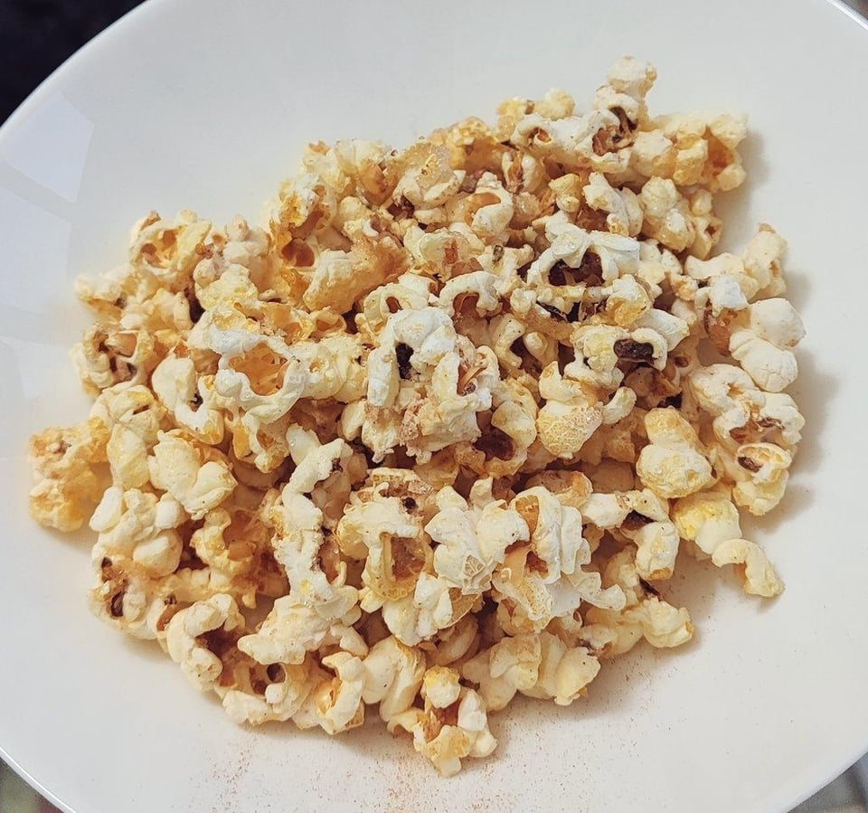 Late night snack: Popcorn with salted caramel syrup + cinnamon + erythritol. This was so yum, I couldn't take a good pic but it was so satisfying texturally… the granulated erythritol stuck to the caramel syrup was reminiscent of actual cinema caramel popcorn 😛