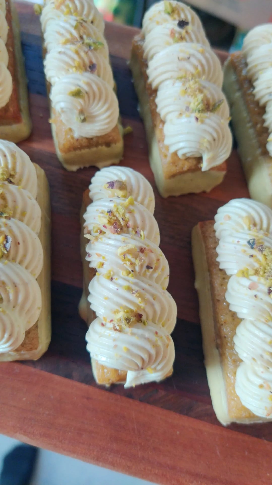 [Homemade] Pistachio financier cakes topped with pistachio whipped ganache.