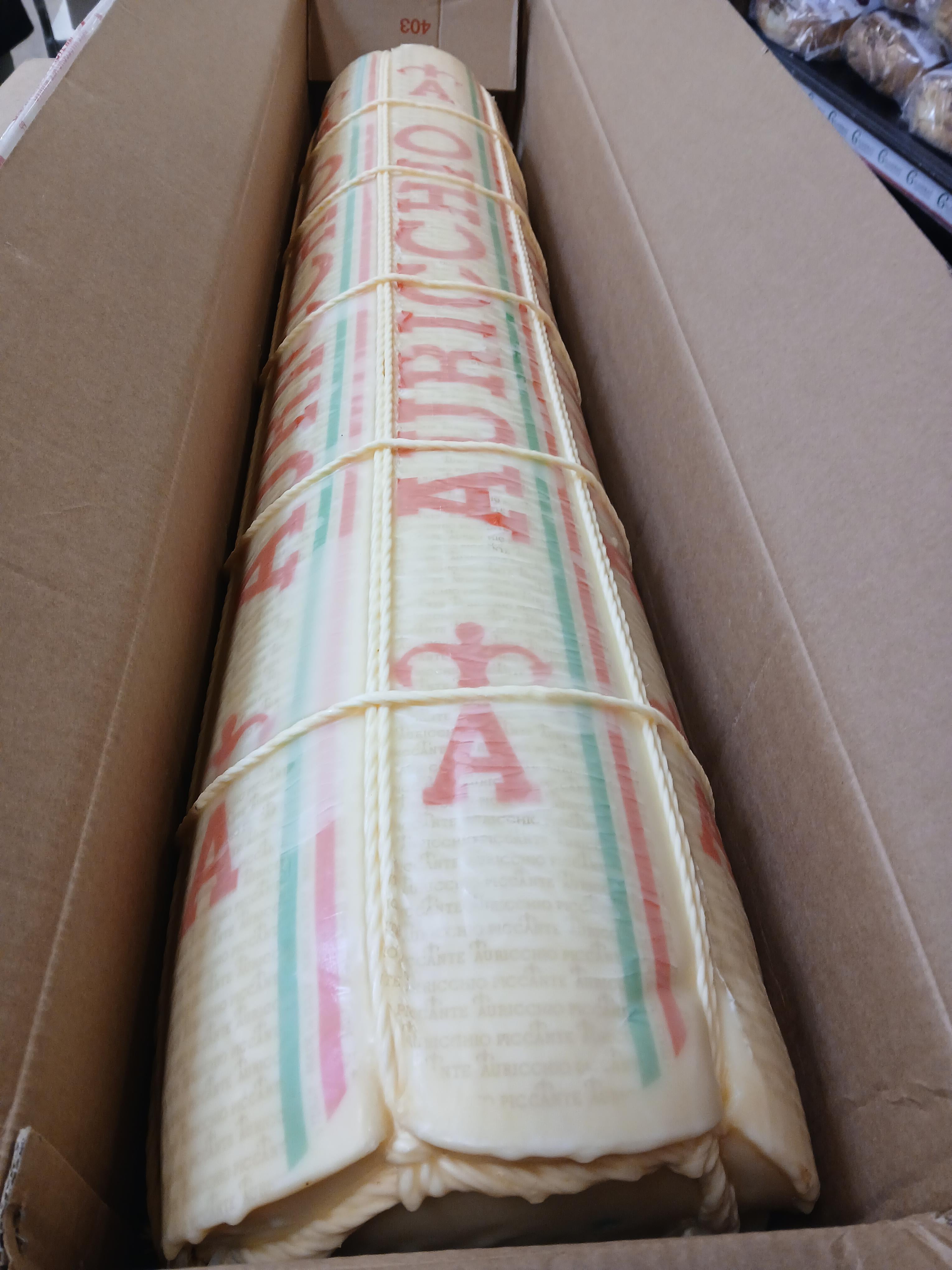 113lbs. It's sitting on two 75lb wheels of Gruyere…..