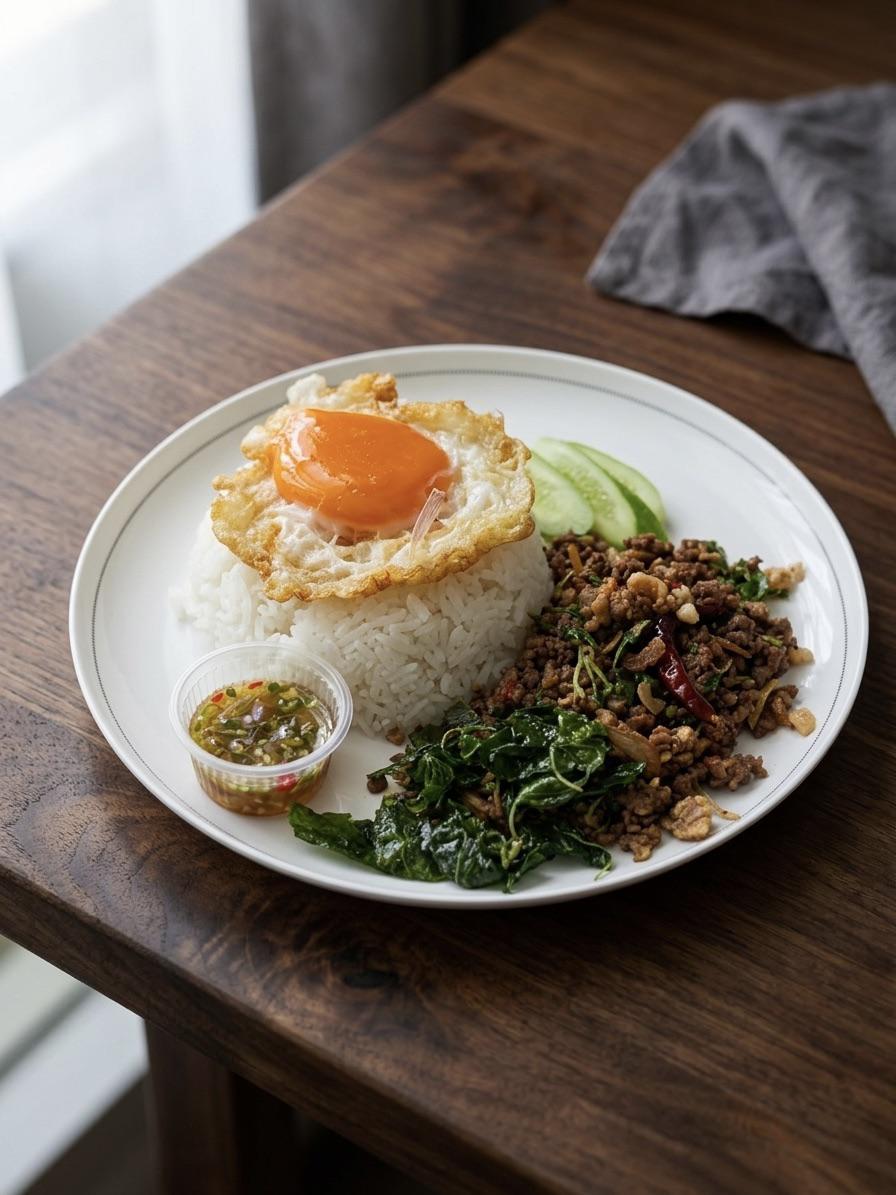 Bangkok-style Pad Kaprao served with rice and a crispy Fried Duck Egg [OC] by JauntyDepress Food Porn