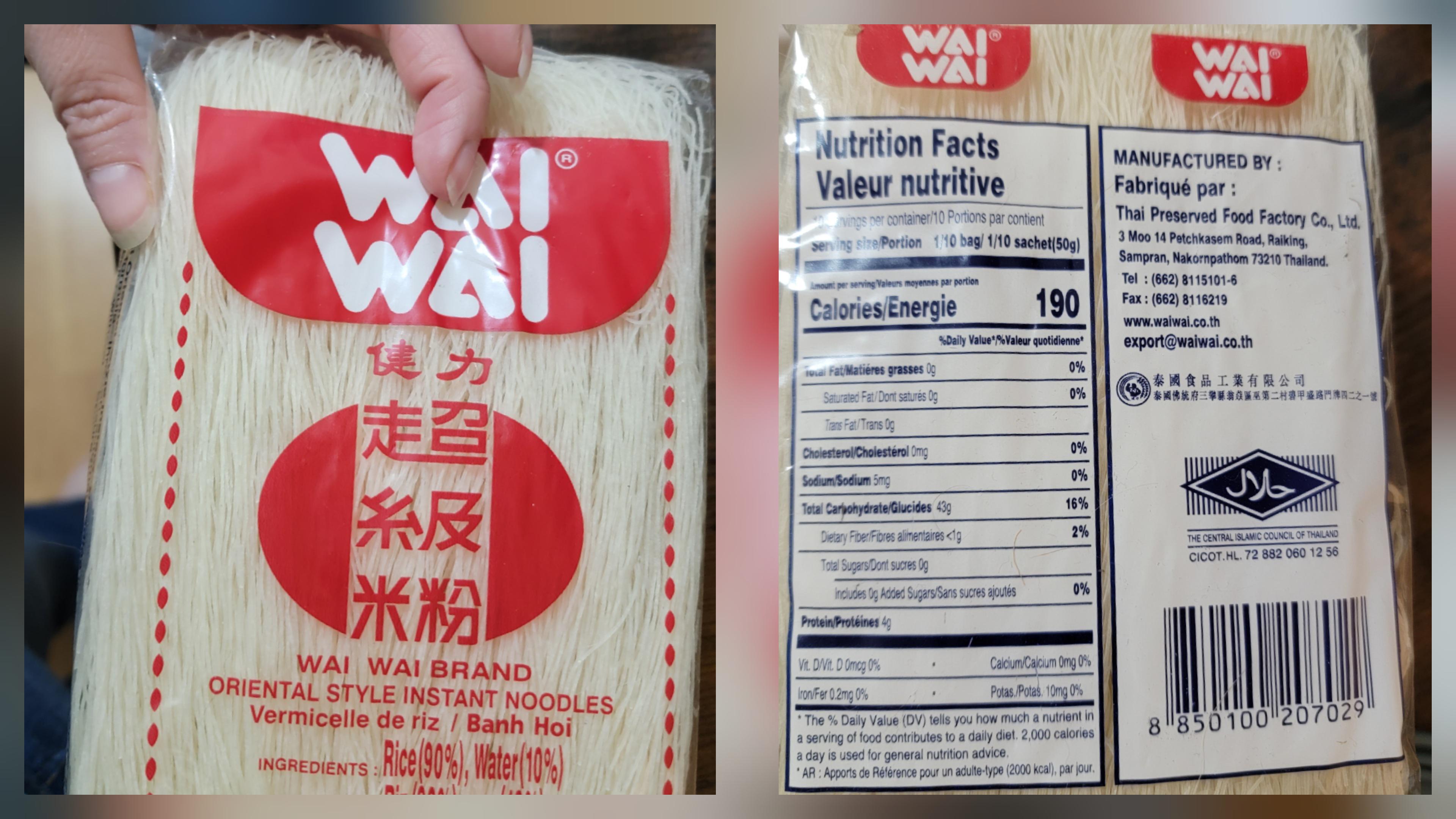 A serving is about half a "block" (see my finger measuring) based on weight. I'll make my own broth and add my own proteins and such, but they're so damn easy. I get these ones from H-Mart, other brands of rice vermicelli seem to have way more calories for about the same serving.