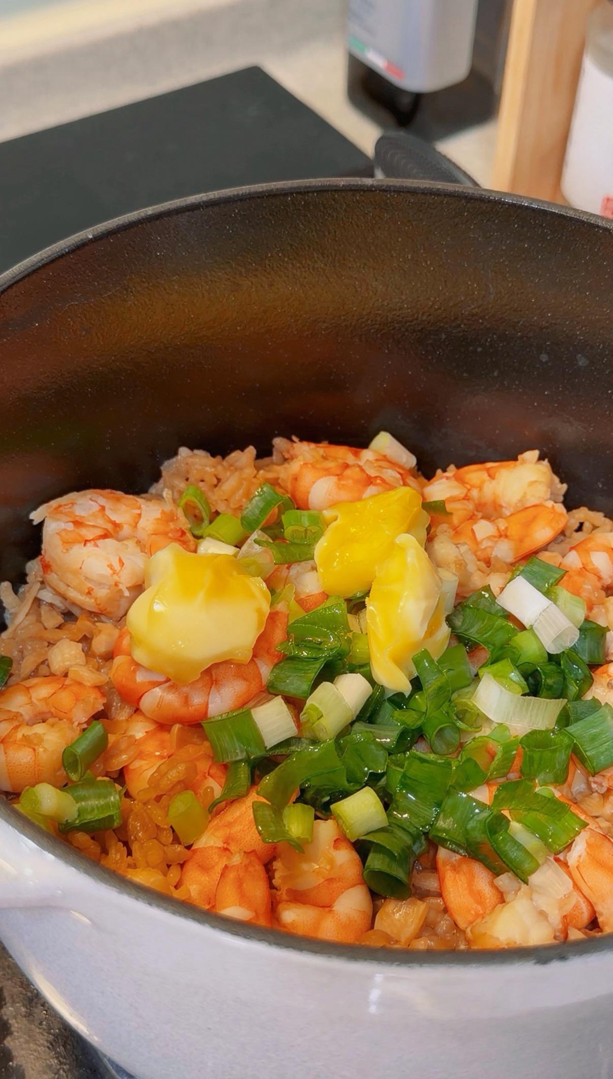 [OC] Homemade Garlic Butter Shrimp Rice Pot.