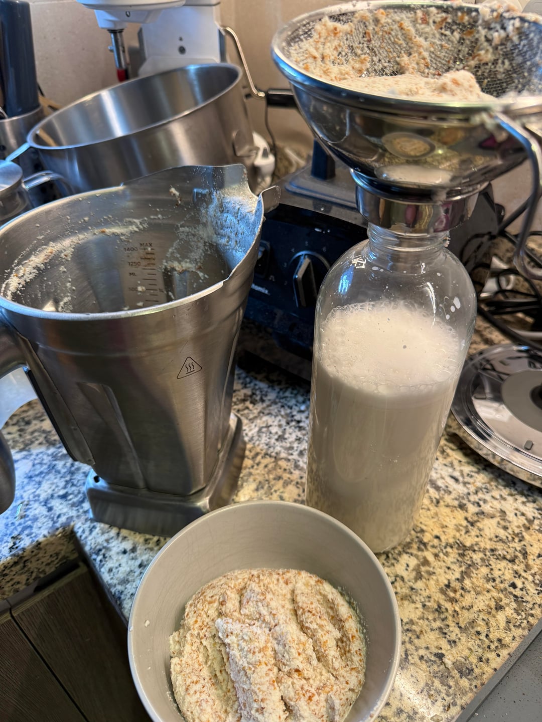 If you have made almond milk yourself, you know that you end up with the wet pulp (pictured in the beige bowl). It is full of fiber.