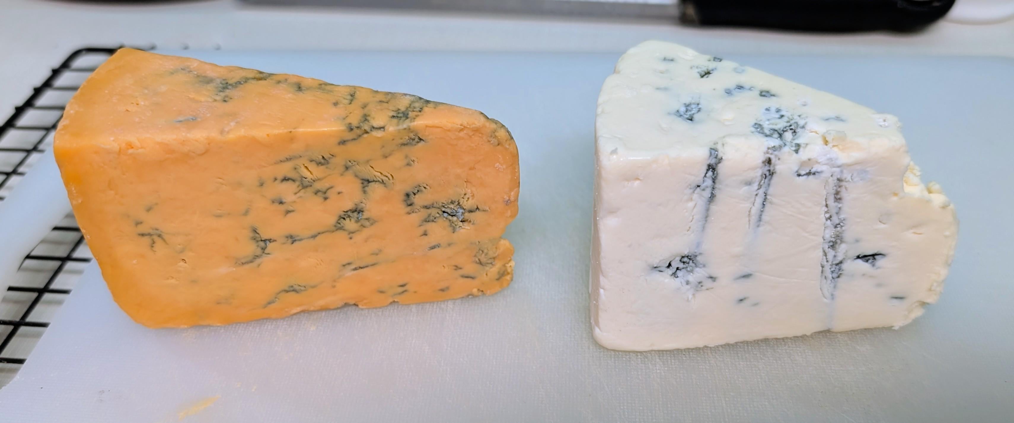 Been looking for a bit for some Shropshire Blue because a few of my shops have been out of it. Got it finally but also tried some Blue Moo from COWS Creamery. Addicted to Blue Moo now, it isn't funky but it is creamy as butter basically it's so rich.
