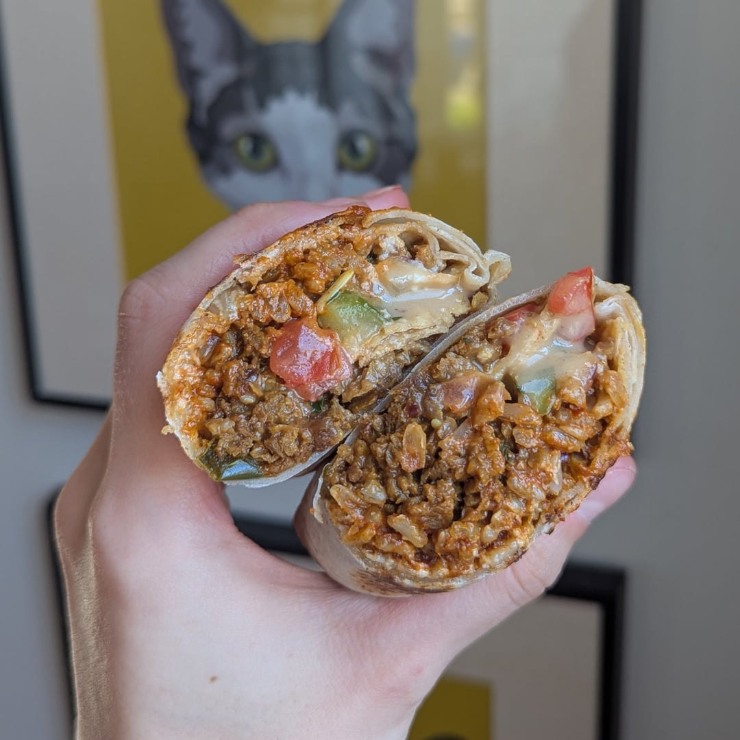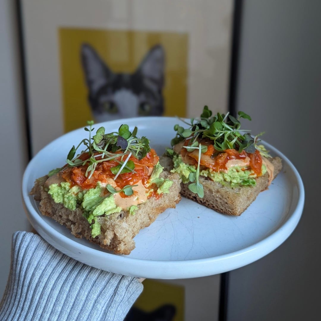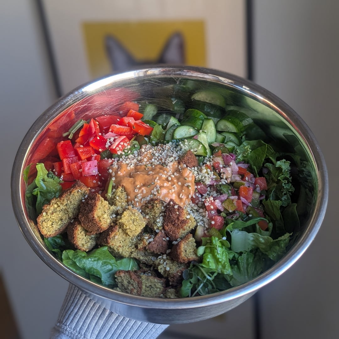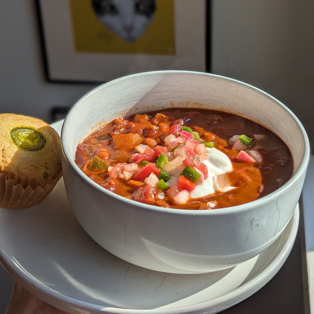 17.) Roasted spring vegetables and tofu on mushroom leek polenta.