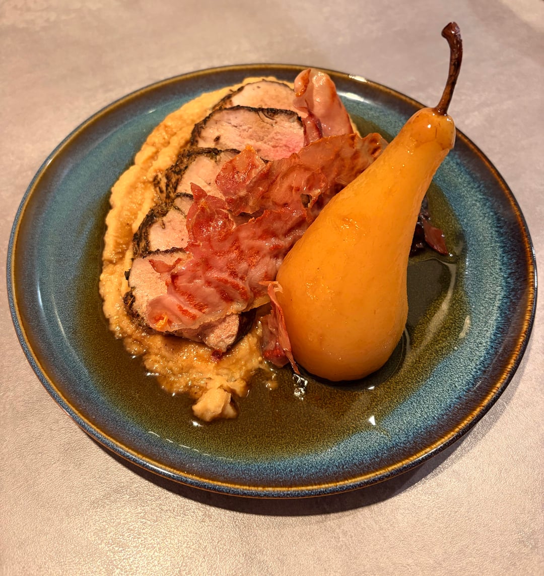 Chester_1326 on March 31, 2026 6:31 pm Celeriac is such a great option for puree. Cauliflower also work great. The cook on the pork is beautiful! What did you poach the pear in?