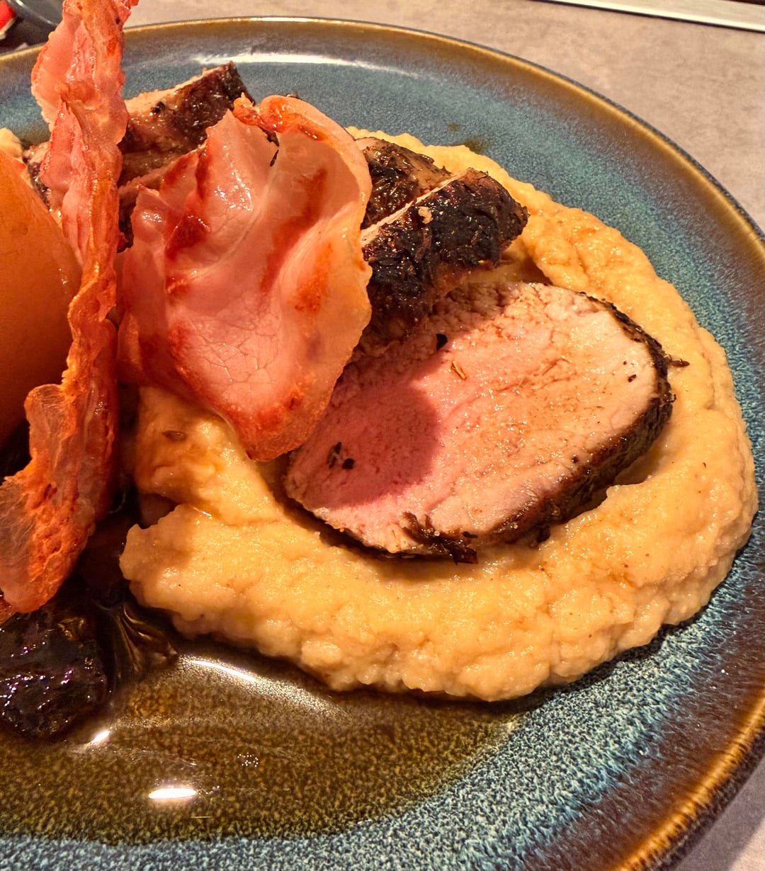 Pork tenderloin with celeriac püré, spiced poached pear and prosciutto chips by Mantis-TobogganXXL Dinner Tonight Tonight's Dinner