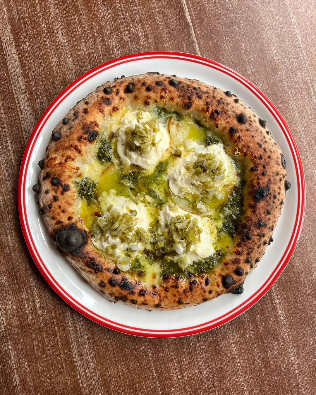 [I Ate] Wood-fired pesto pizza with burrata, spring onions and olive oil by melb_food_finds Food Porn