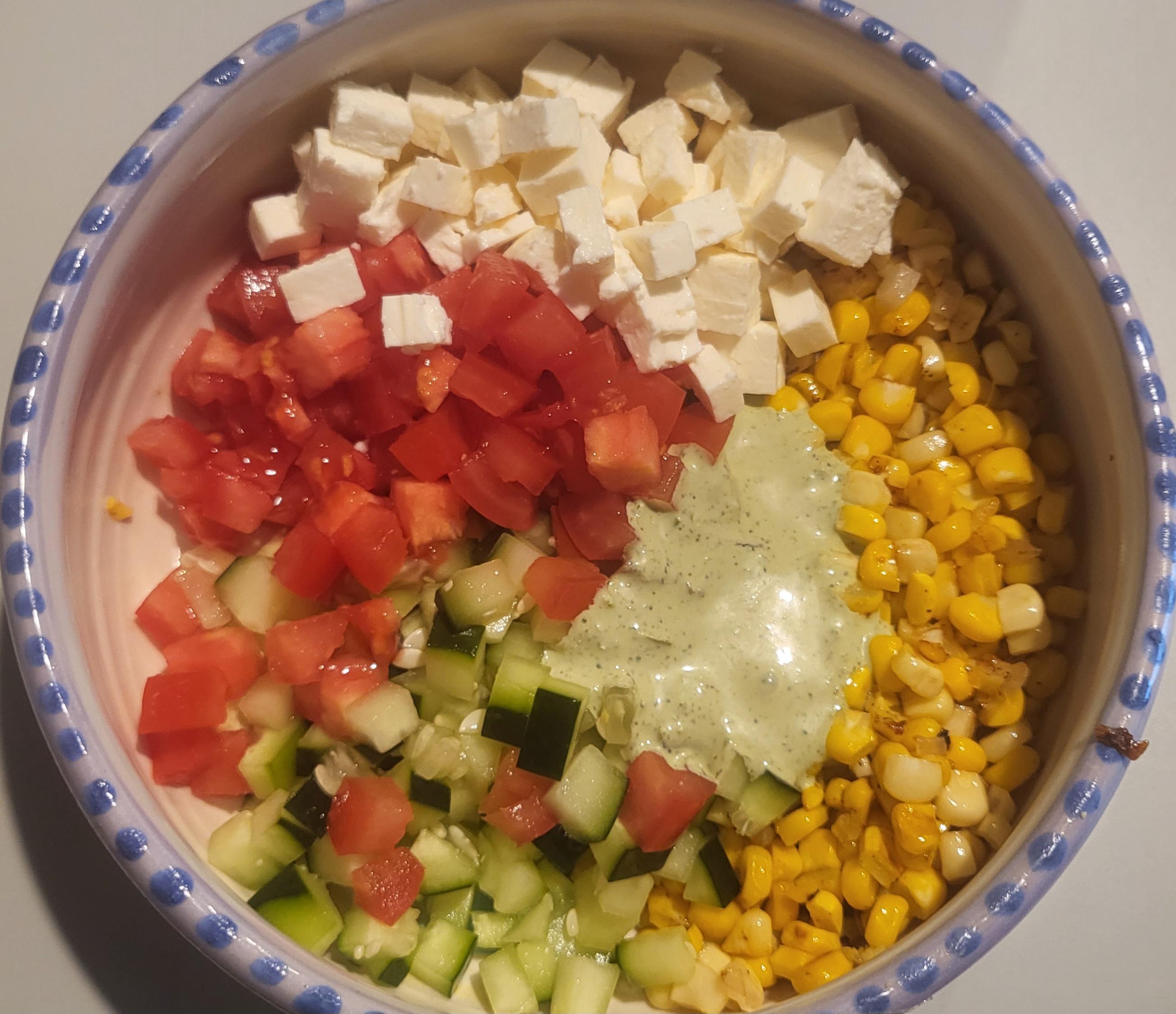 [Homemade] sweet corn salad w/ cotijo & green goddess dressing