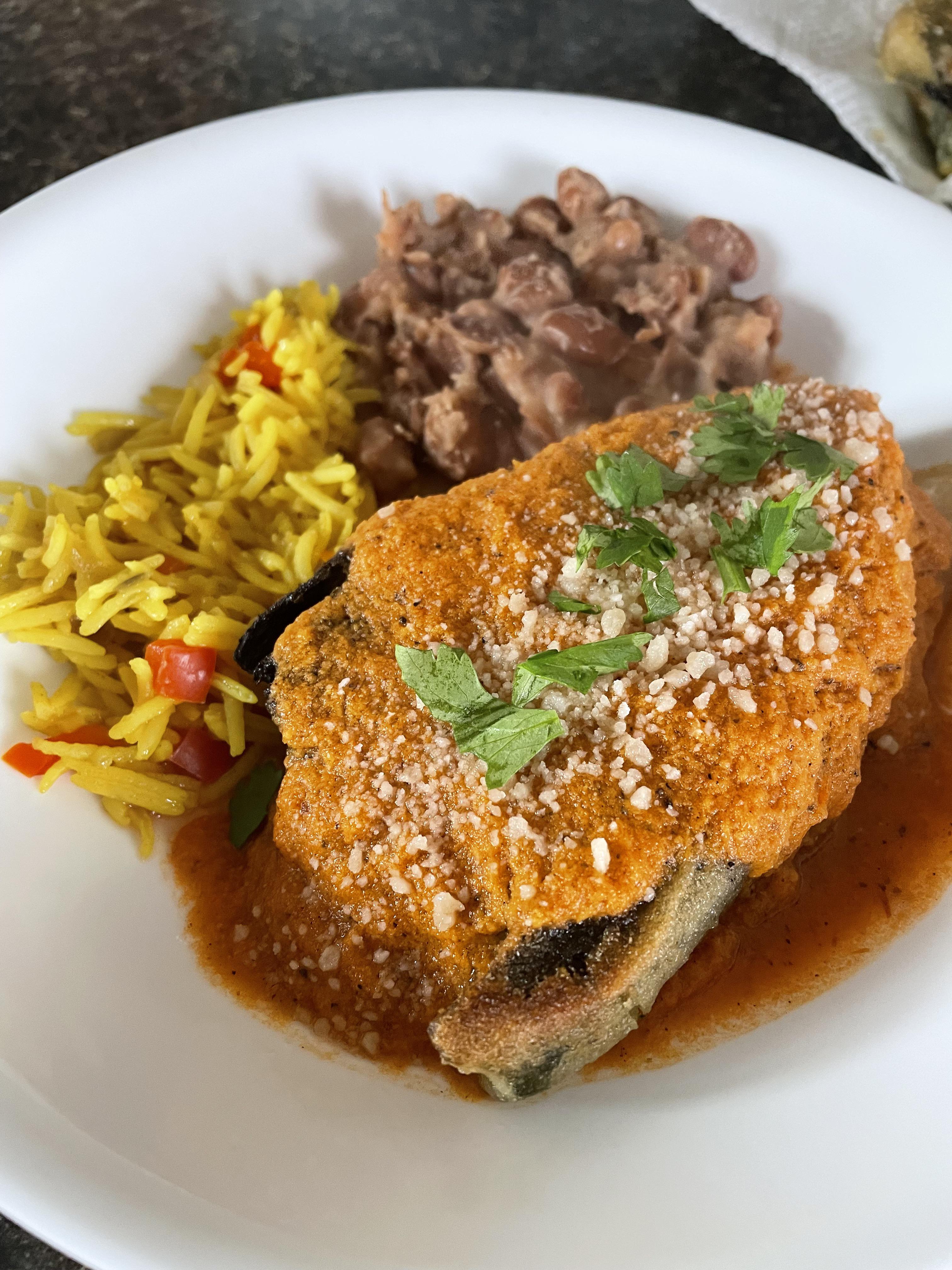 Serve the chile on top of a plate of the tomato sauce