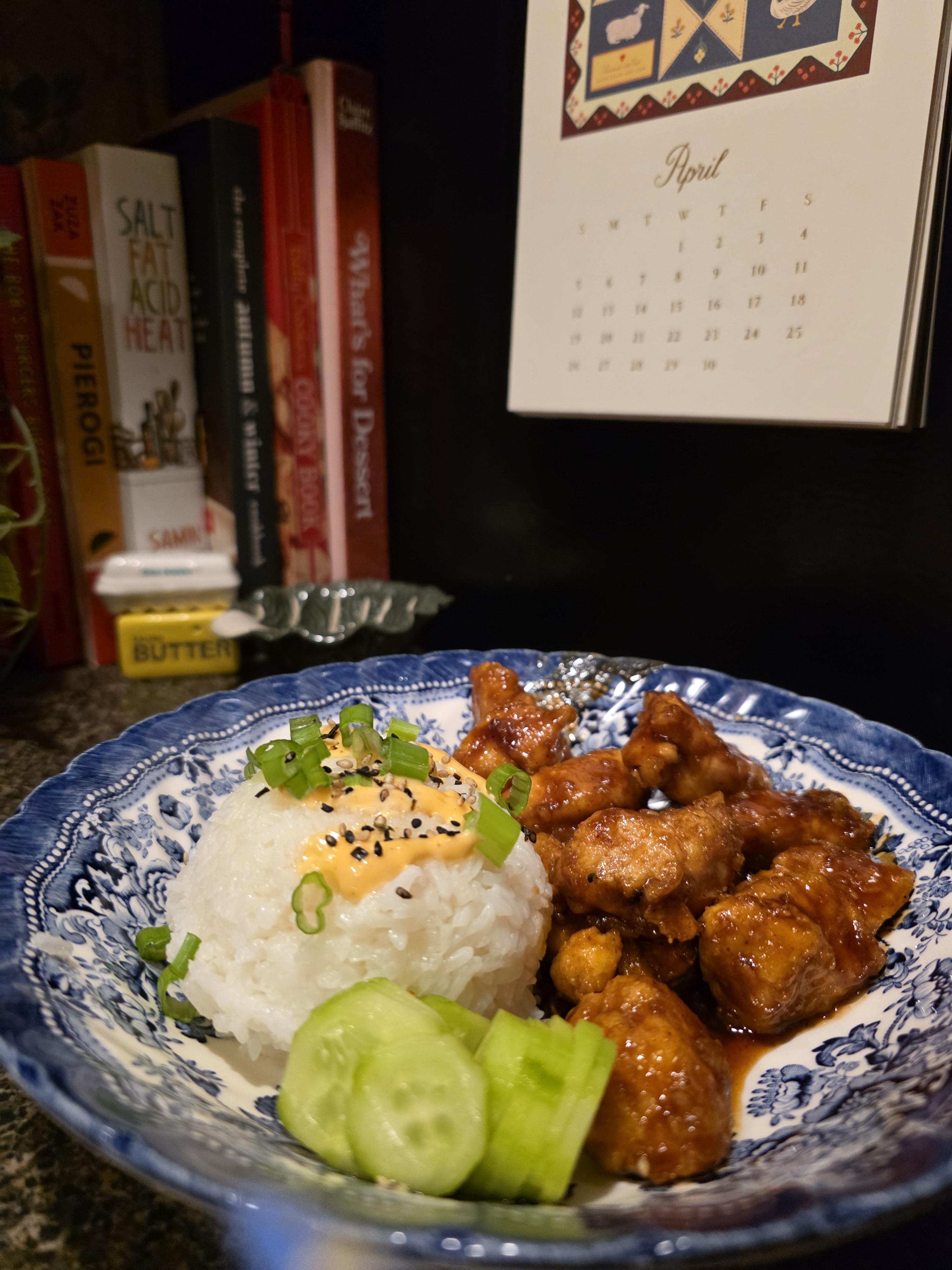 That looks bomb! Crispy chicken and honey garlic is a killer combo, fr. Gotta try pickling cucumbers too, sounds perfect for summer vibe.