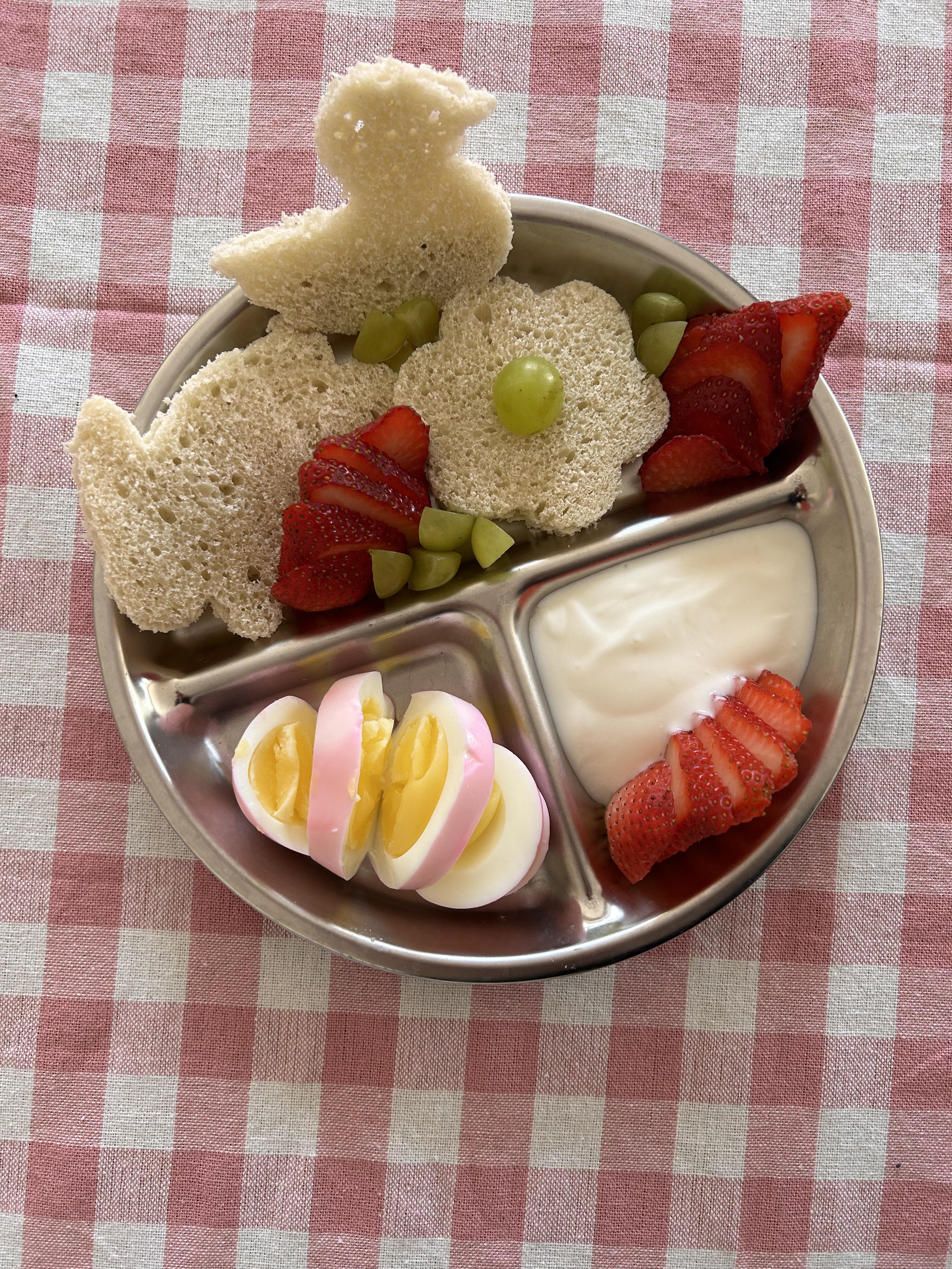 The bread is homemade sour cream bread, the egg I dyed pink with dragon fruit powder. A simple but whimsical breakfast for my toddler 🙂 by Sm0l_b00 Food