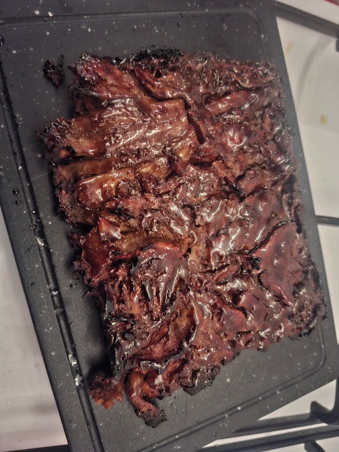 after that you can sear it in the pan with oil or put it in the oven/airfryer with some oil. after you have done each side. you can put the glaze in the pan or brush the glaze on the ribfingers if using airfryer or oven. make sure all sides are coated and then you should be done.