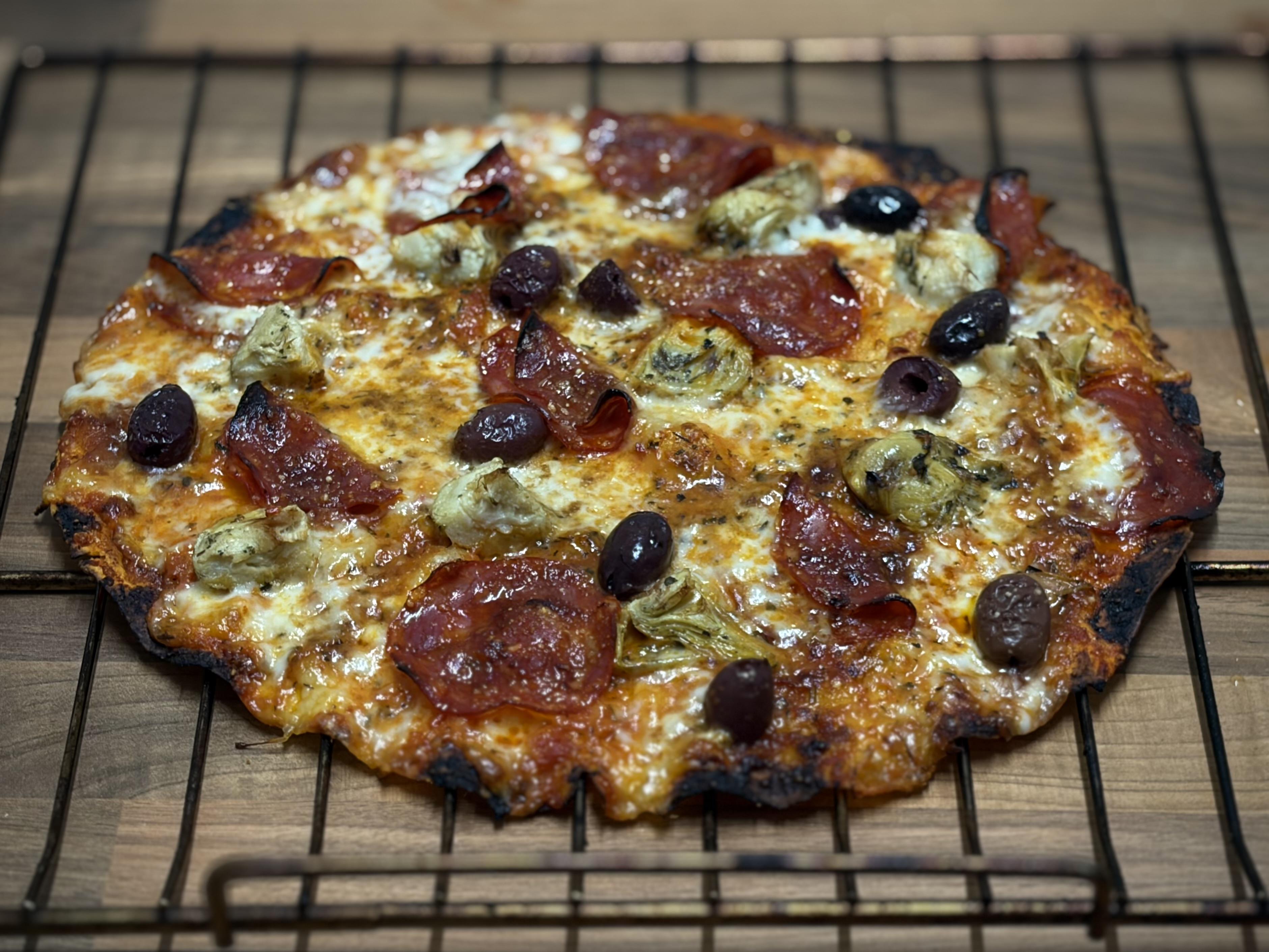 Those toppings definitely deserved something more than a tortilla for crust but id knock it down anyway. Looks great.