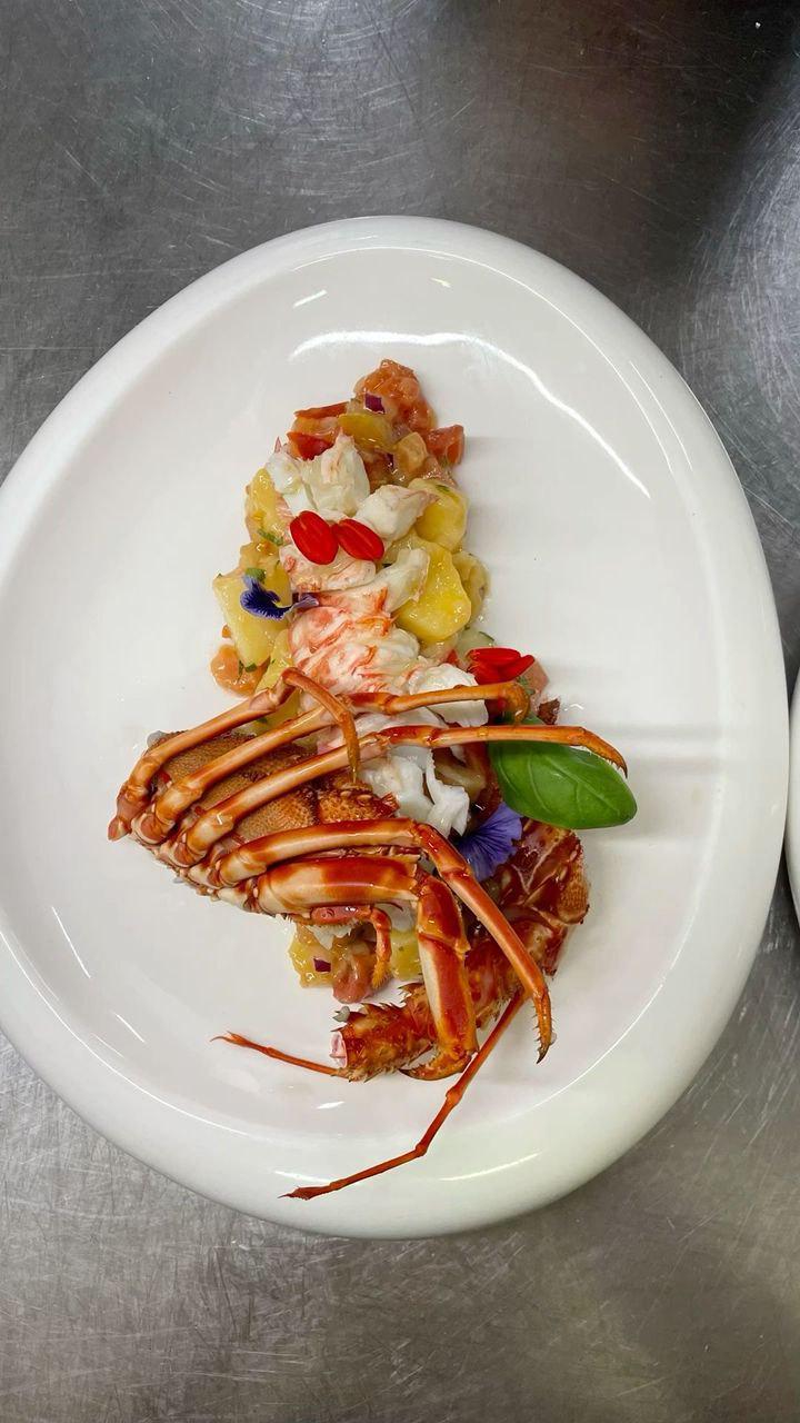 Fresh Spiny Lobster with Tropical Fruit Salsa, Basil, and Edible Flowers by CooffeeWithMilk Food Porn