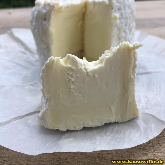 Swiss double cream cheese with a white live rind, made from pasteurised cow’s milk. Soft as butter, spreads brilliantly on melba toast. Tastes mild, slightly tart and quite interesting. Smells of fresh milk but also slightly ripe, with a hint of oregano. Wife loved it too.