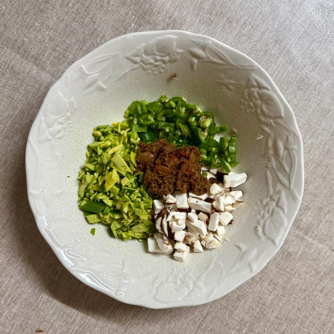 I mixed chopped squash trimmings, green chili, and shiitake with doenjang, let it sit for about 15 minutes, then added kelp stock and cooked it briefly into a light, spoonable sauce.