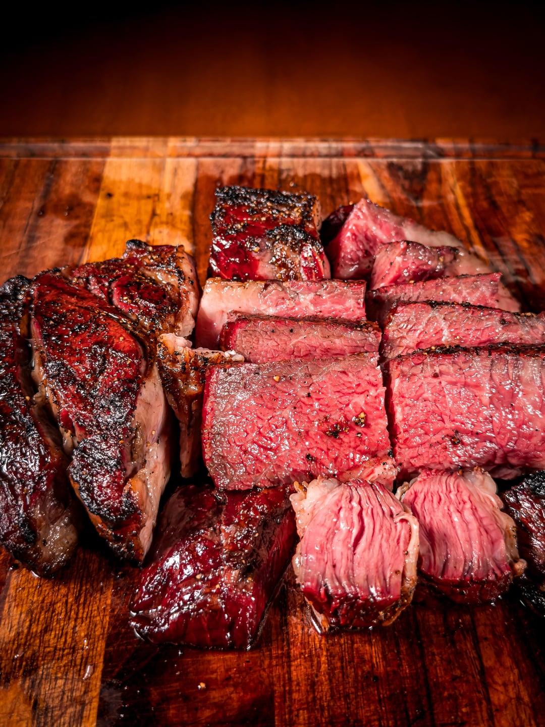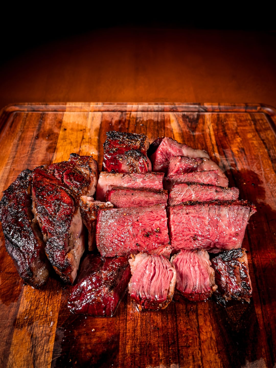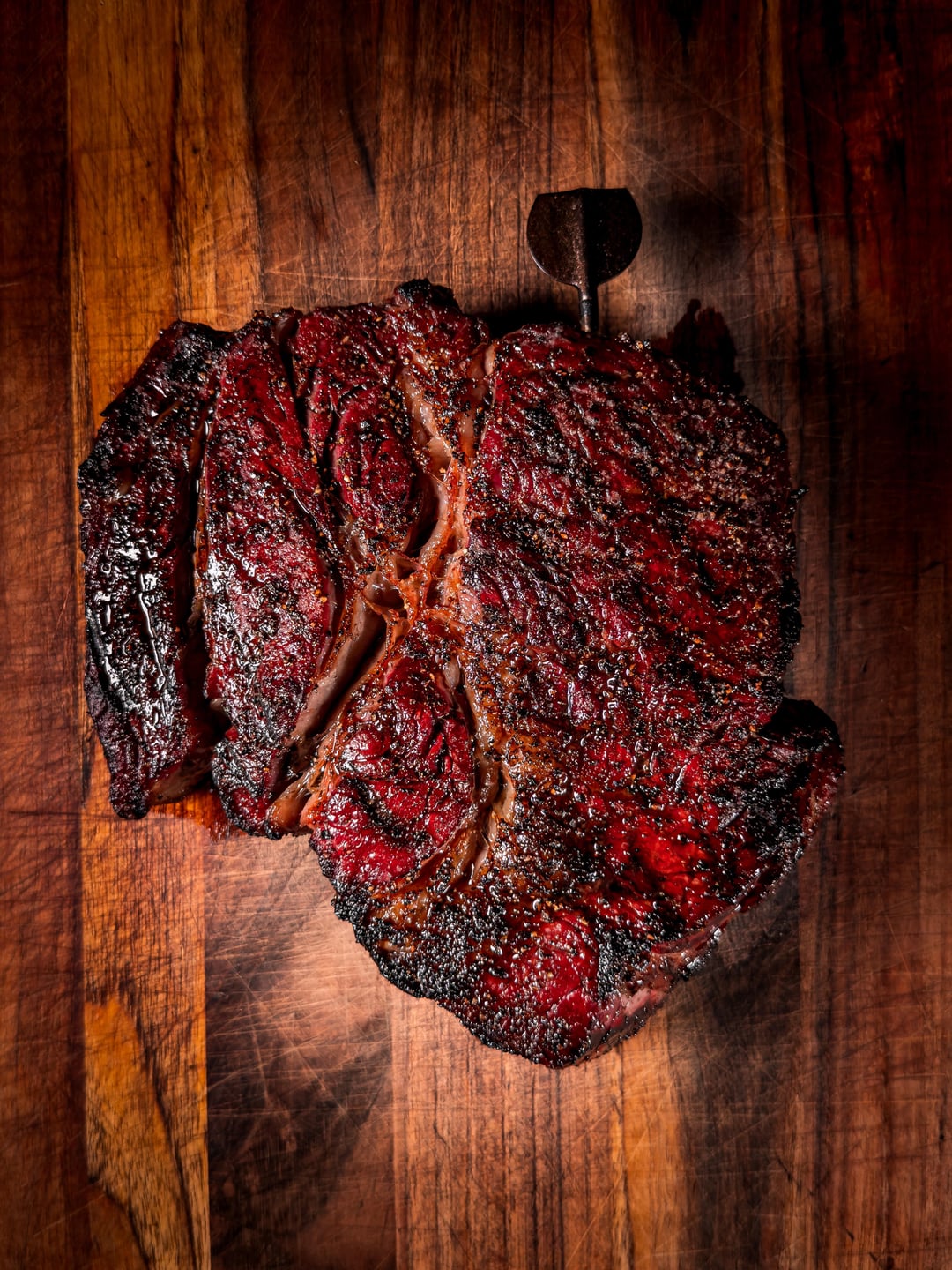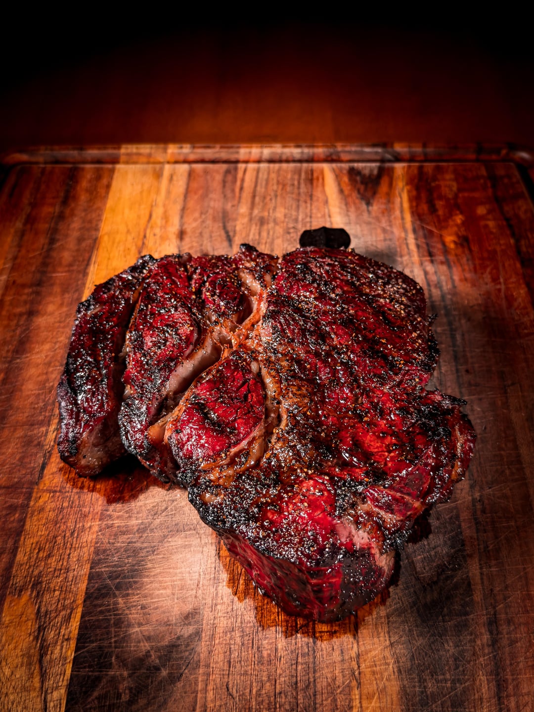 This chuck roast came out like butter. Smoked with hickory at around 175F for just a bit over 2 hours to an internal temp of 120F. Then seared over charcoal for a total of 4 minutes, flipping every 30 seconds. Peak temp during the rest came to 136F.