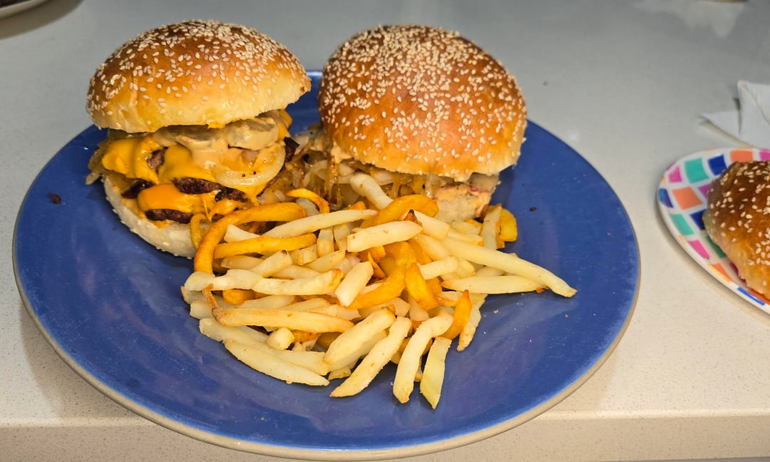 Burger taste challenge: Oklahoma style cheeseburger last night vs whopper style tonight. Home made buns and beef smashed fresh each night. by naikii Dinner Tonight Tonight's Dinner