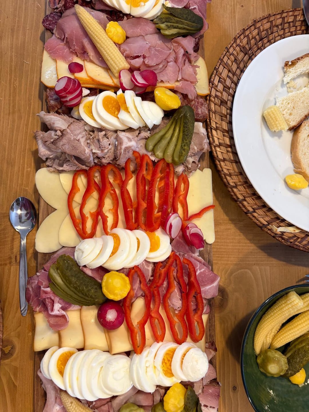 Different types of pork sausage, ham and cheese. Traditionally served with white sweet bread and horseradish. by madeinaustrija Food