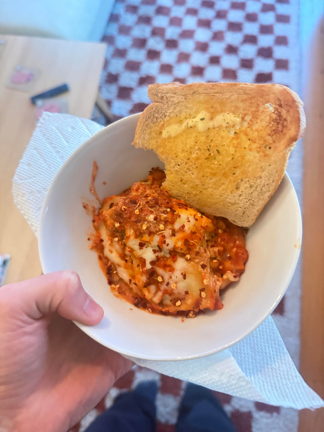 Pair it with a salad bag and some thin sliced bread with garlic salt for some Italian comfort food.