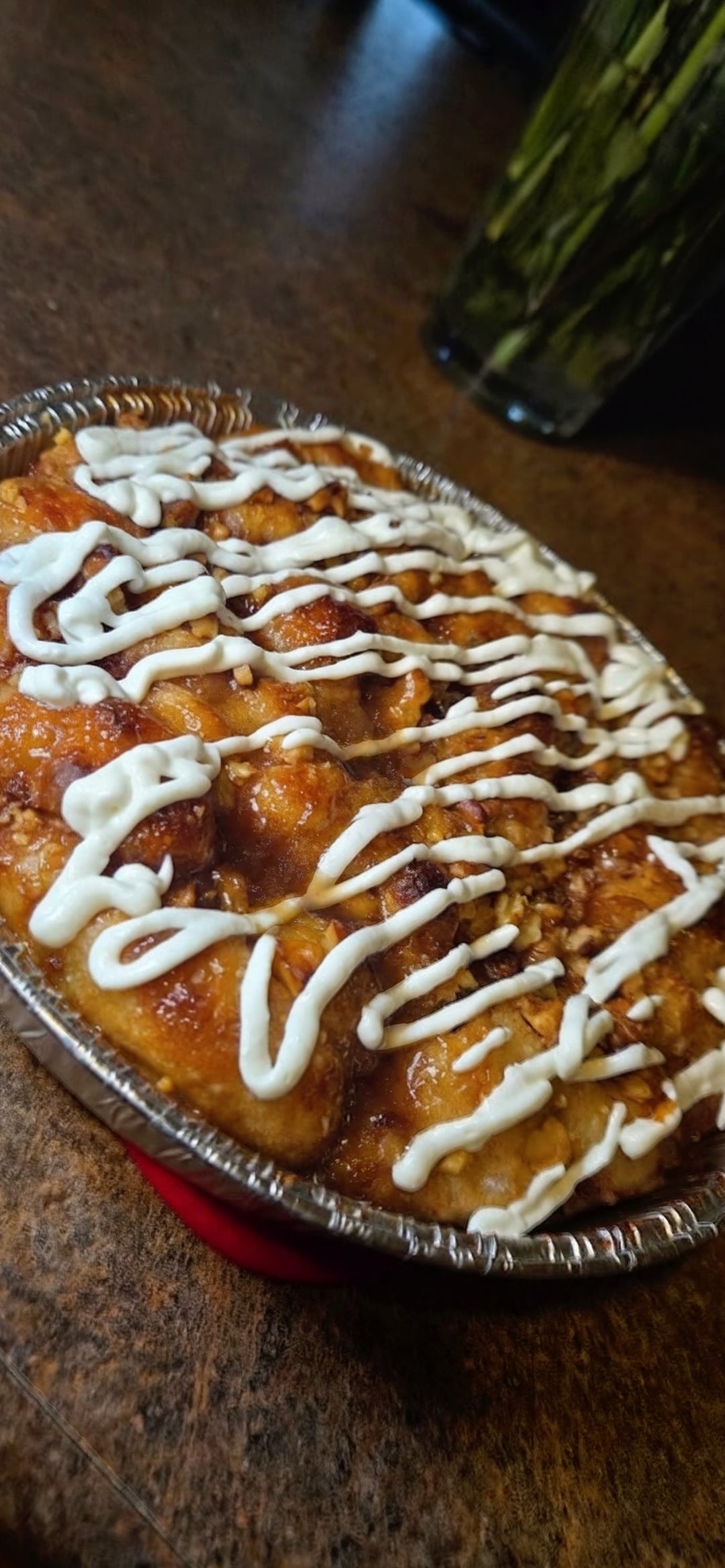 Melt butter into remaining cinnamon, ginger and brown sugar then pour over and into dimples.