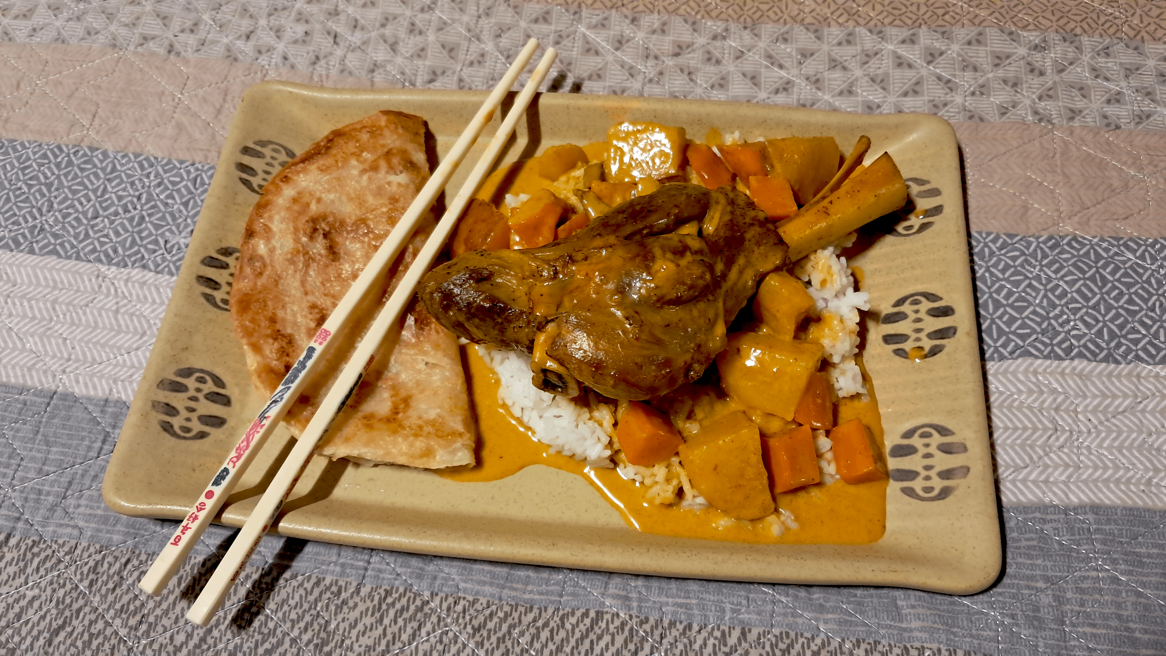 Thai Yellow Curry Lamb Shank, White Rice and Roti