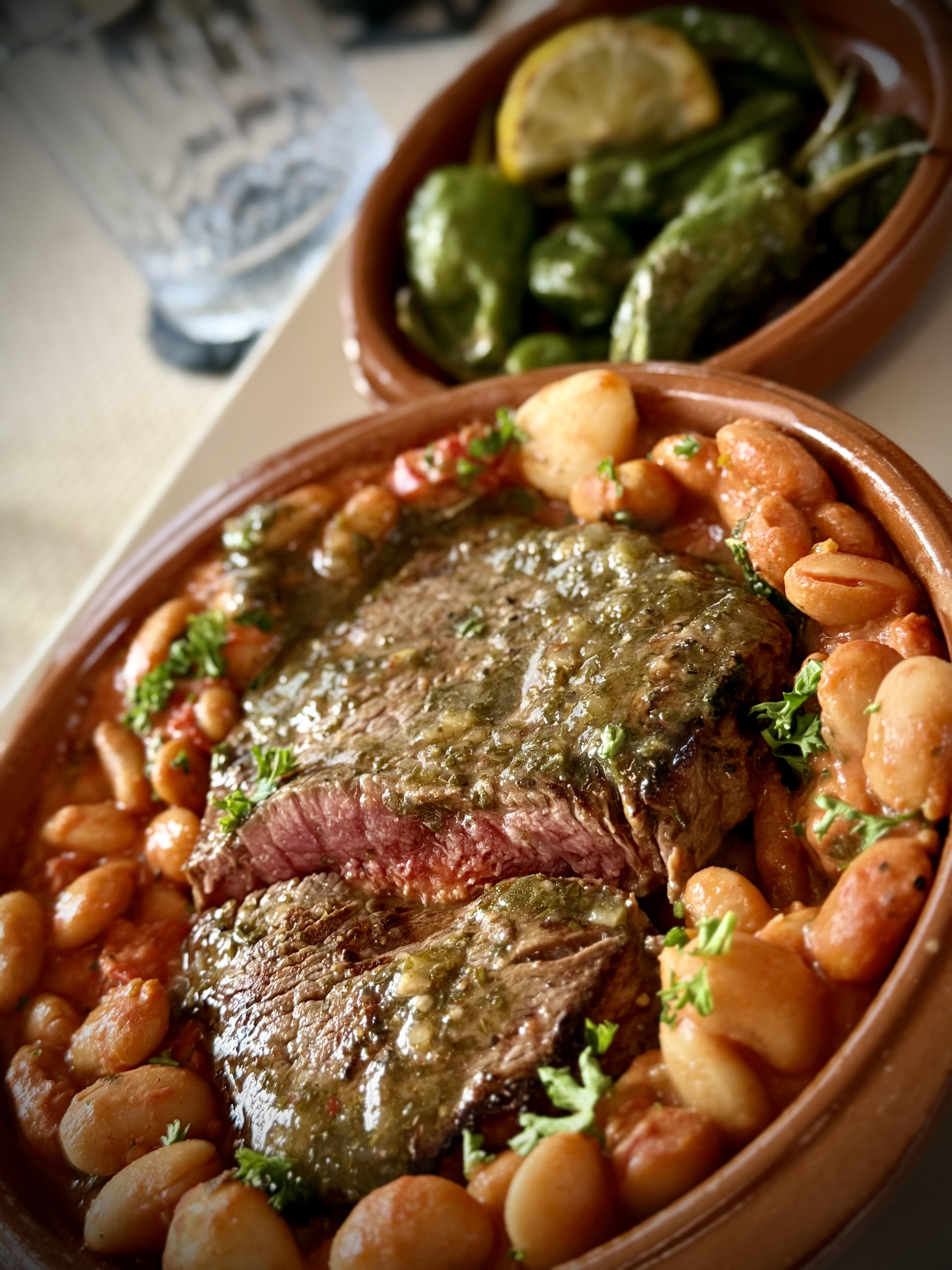 Chimmichurri Steak, Creamy Garlic & Paprika Butter Beans and Charred Padrons by TheBristolBulk Food Porn