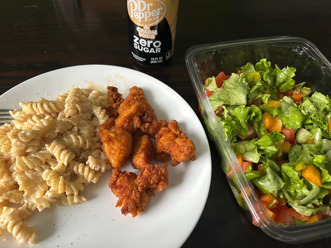 Mac and cheese, spicy chicken (Just Bare), and salad by novascotia3898 1500 Calorie 1500 Calorie Diet 1500 Calorie Meal Plan 1500 Kcals 1500 Kcals a day 1500 Kcals per day 1500 Kilocalorie 1500 Kilocalorie a day 1500 Kilocalorie per day 1500isplenty