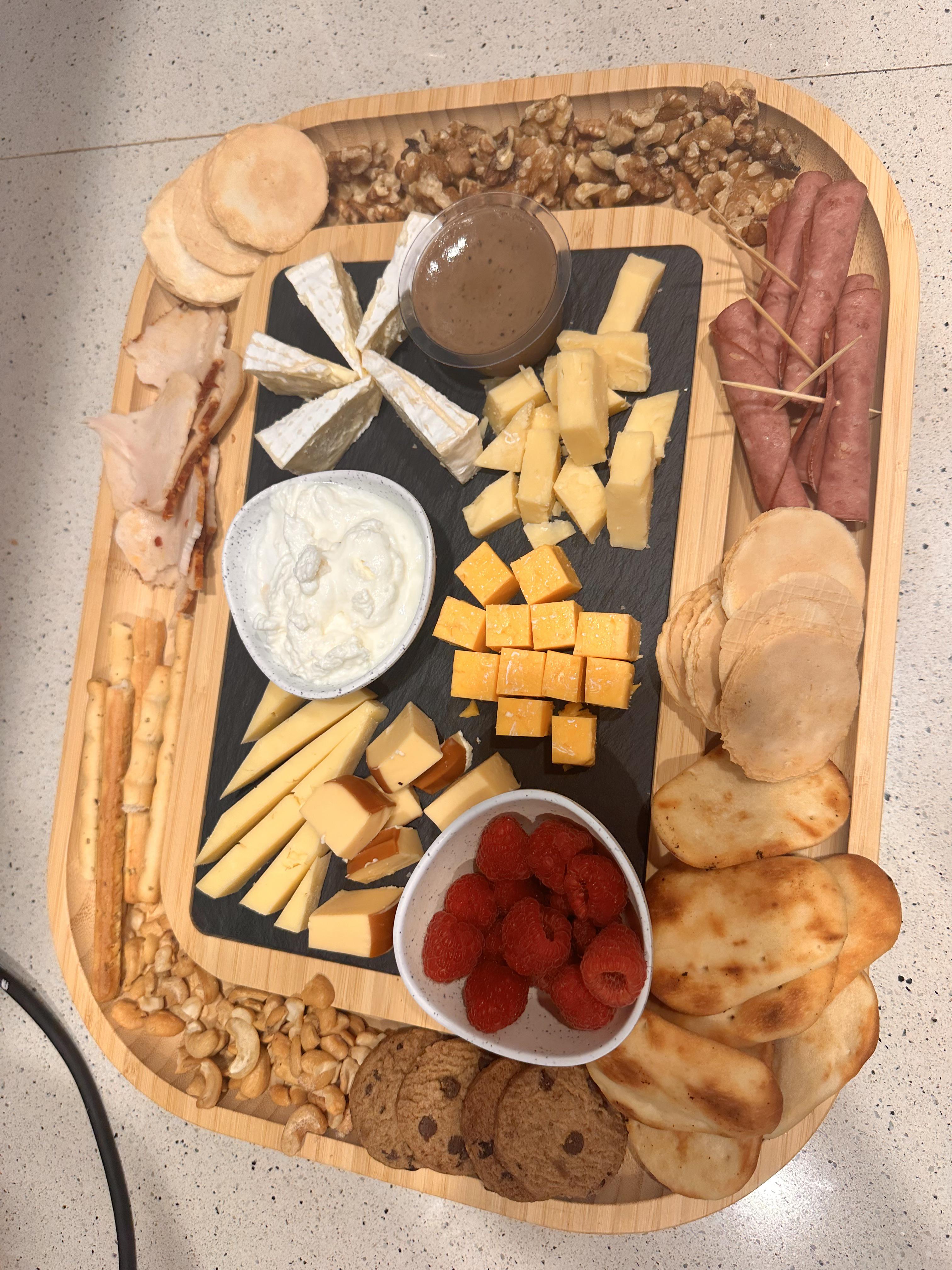 Triple cream Brie, whipped goats cheese, three types of Irish cheddar and a Smokey Dutch
