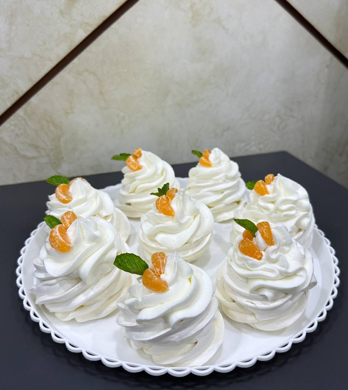 [Homemade] Cloud-like Pavlovas with a touch of mint and tangerine