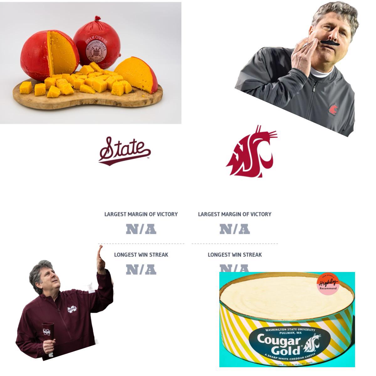 I need Wazzu and Miss State to play each other, it just feels natural. Have an edible Cheese trophy by Chambanasfinest Cheese