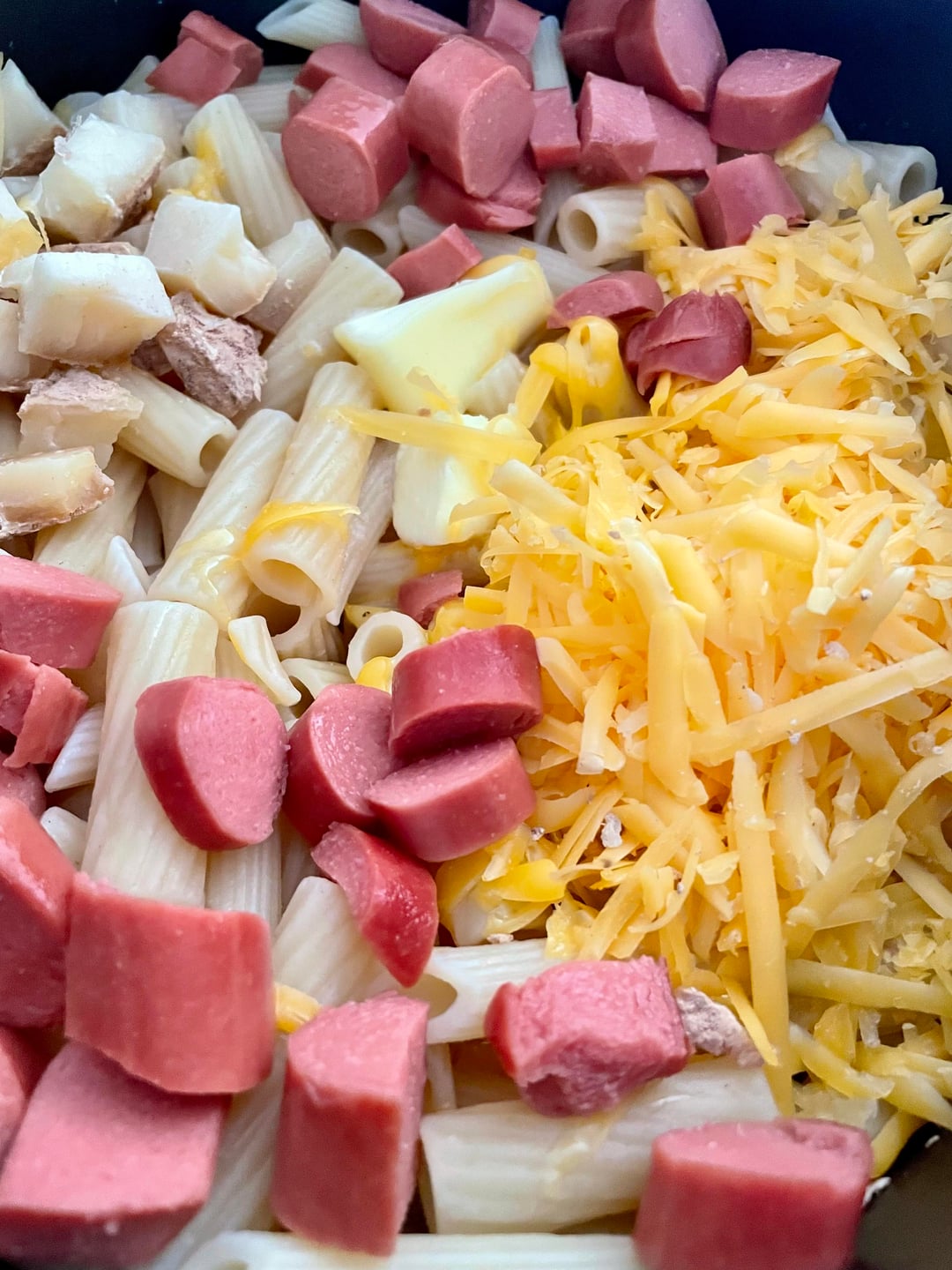 sheneversawitcoming on April 7, 2026 12:38 am In the second pic. Upper left quadrant. Doesn’t look like something that would be in a Mac and cheese. Looks like tuna. Ideas?
