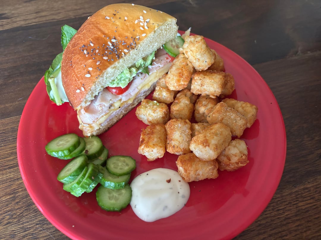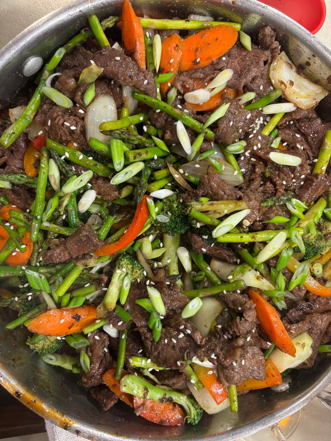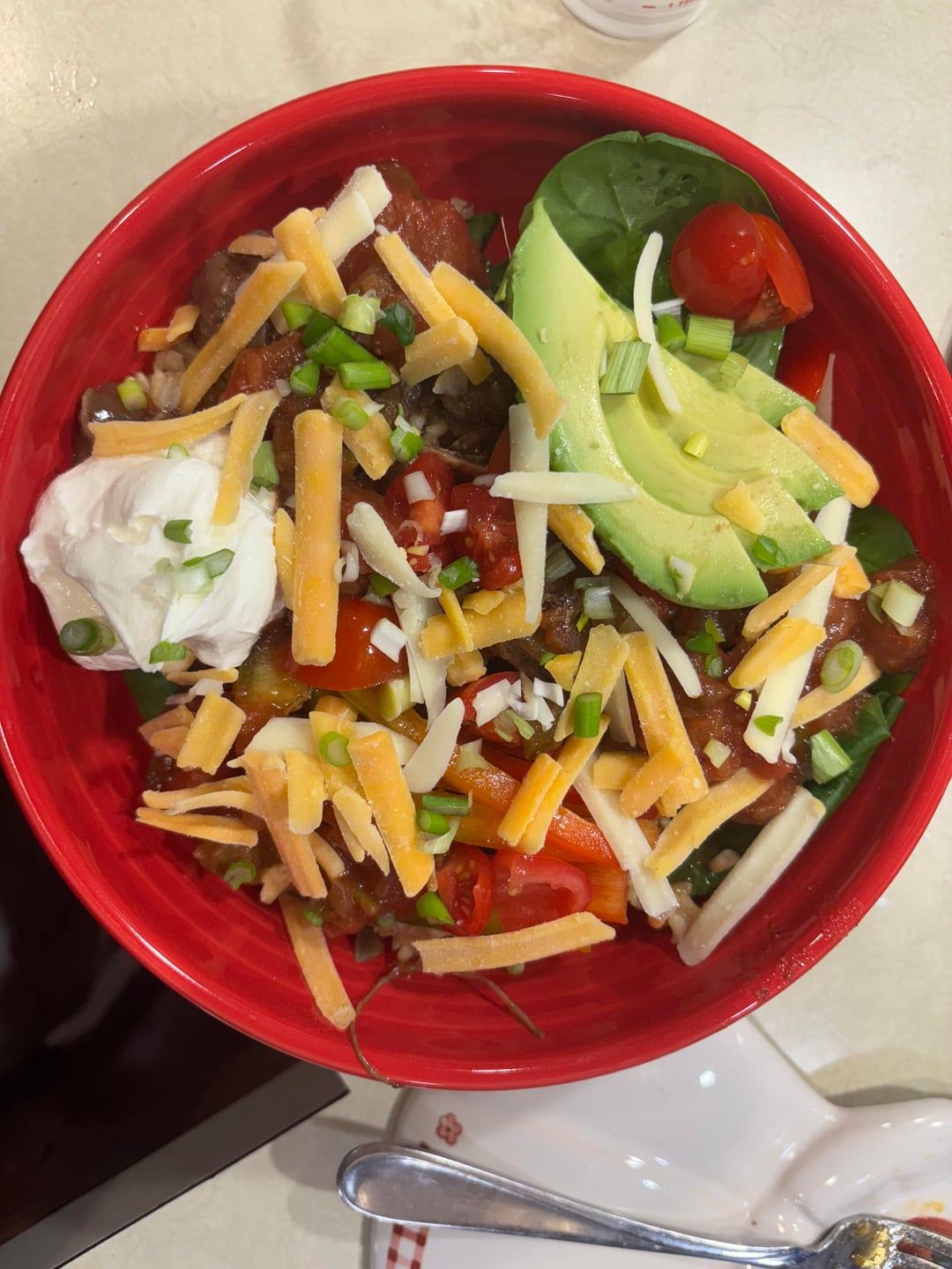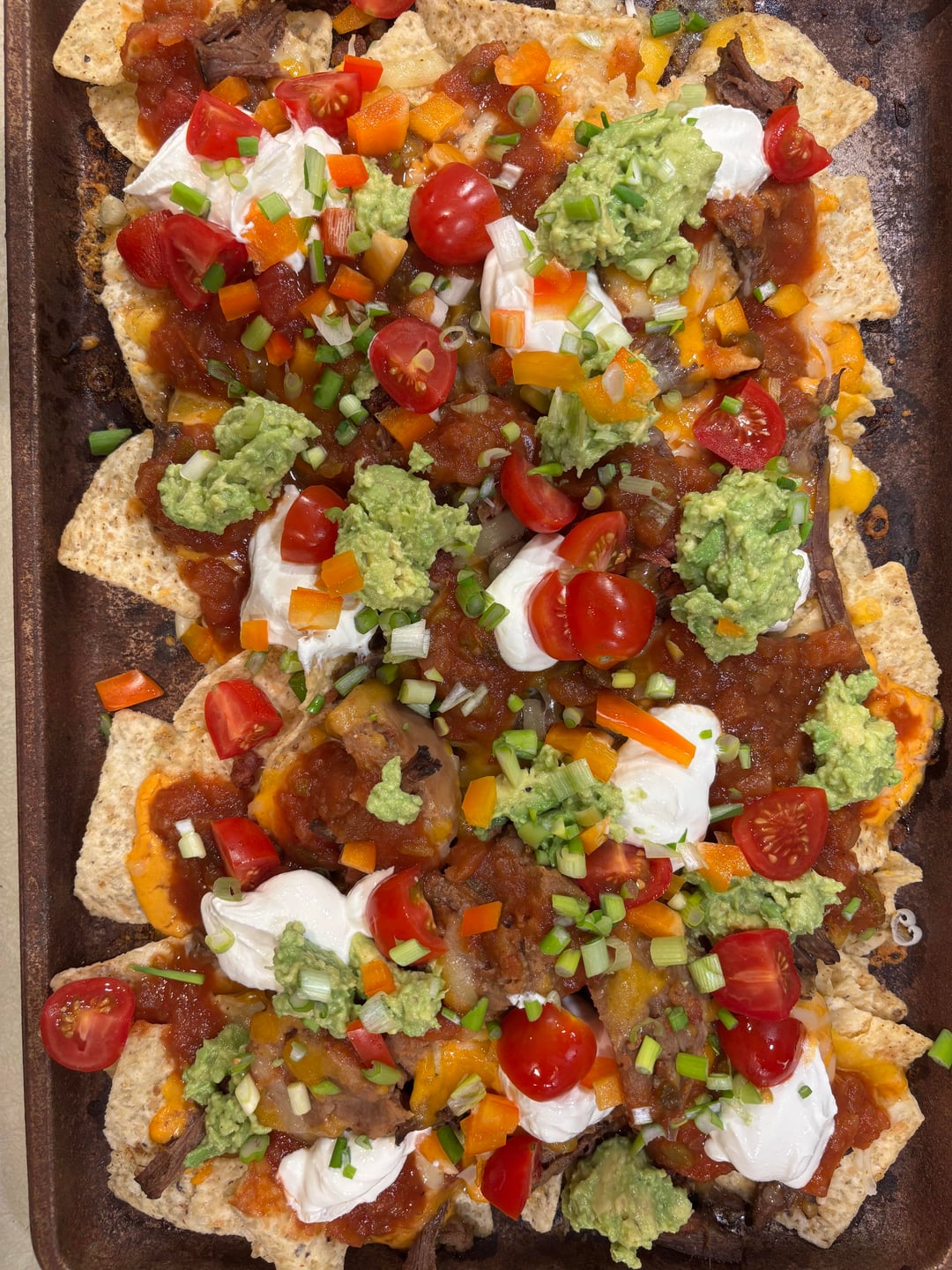 contemplativepancake on April 8, 2026 12:57 am 1. Angel hair pasta with mushroom cream sauce, chicken, and bacon – perfect date night meal 😋 2. Beef stirfry with broccoli and asparagus 3. Broccoli and potato cheese soup, with cheddar and herb biscuits just out of frame 4. Bacon and mushroom cheeseburger on a homemade brioche bun 5. Sub with tater tots – had to use up my last bun 6. Mushroom stroganoff with mashed potatoes, corn, and roasted broccoli 7. Burrito bowl with Mexican beef and all the fixings 8. Gyros with homemade falafel, couscous salad on the side 9. Sheet pan nachos I can share the process for any of these if anyone wants 😊
