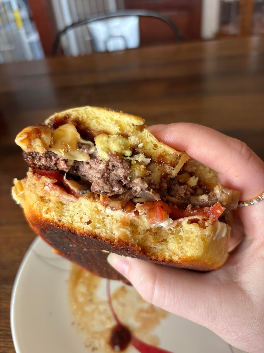 4. Bacon and mushroom cheeseburger on a homemade brioche bun