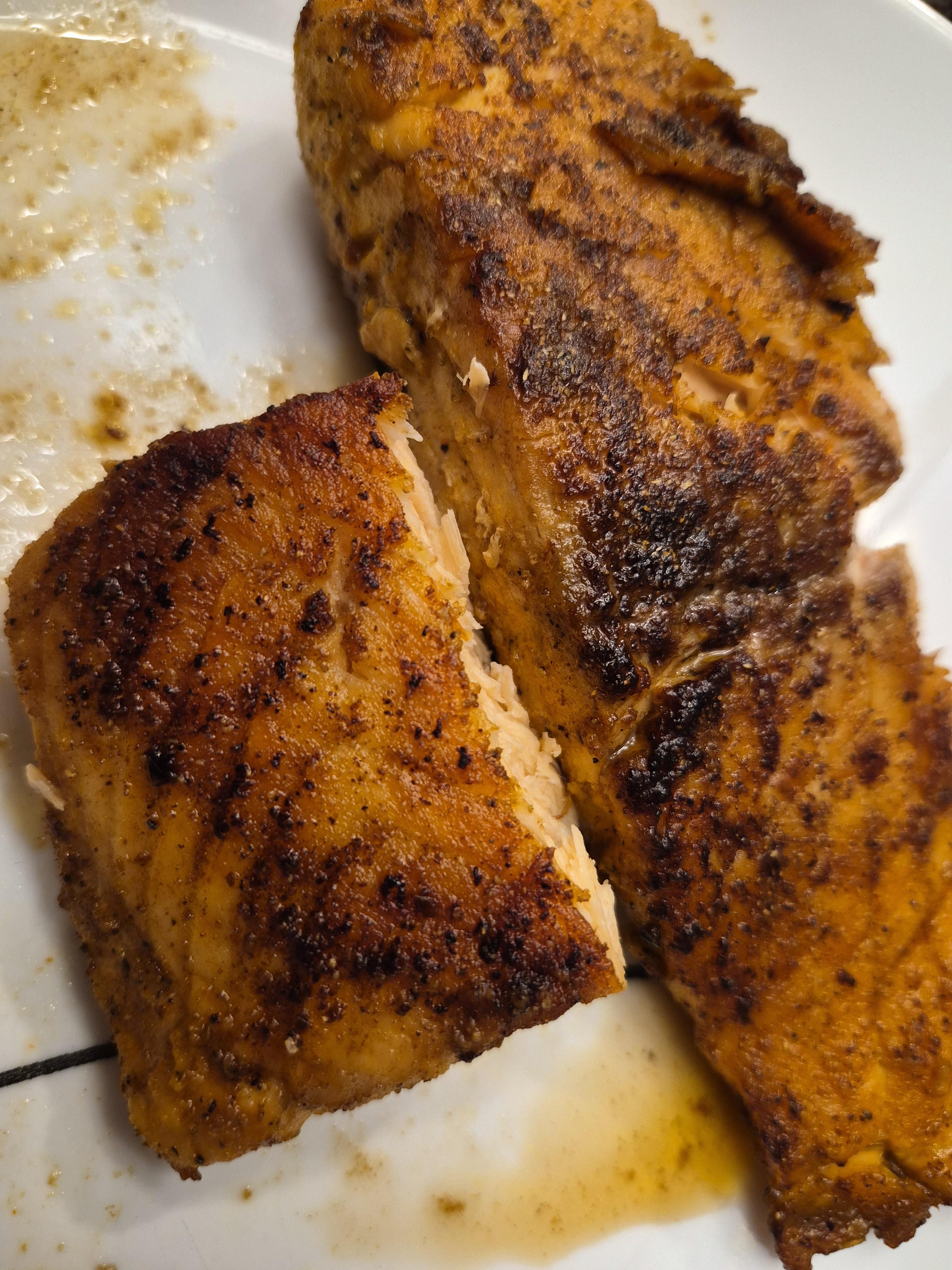 Man all these recipes in the comments makes me feel bad about mine lol. I just get a bunch of large portions from Costco, season them and after a day in the fridge I freeze them. Still frozen I throw one in the air fryer skin side up for 40 minutes at 350 and it comes out still juicy and flakey.