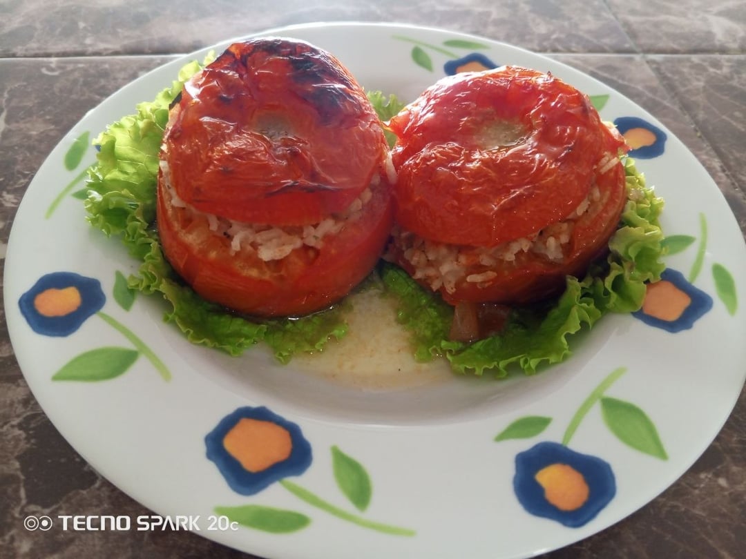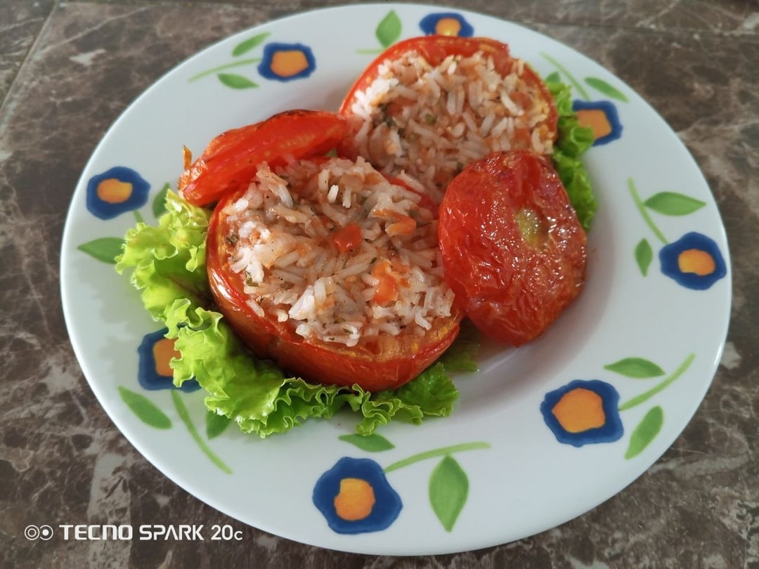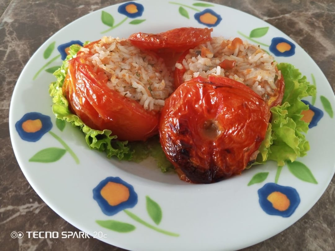 I had some beautiful tomatoes in the fridge, and before they went bad, I decided to make this recipe. They're my first time making stuffed tomatoes, and I'm very happy with the result. These tomatoes are perfect as a side dish for lunch or for a light dinner.