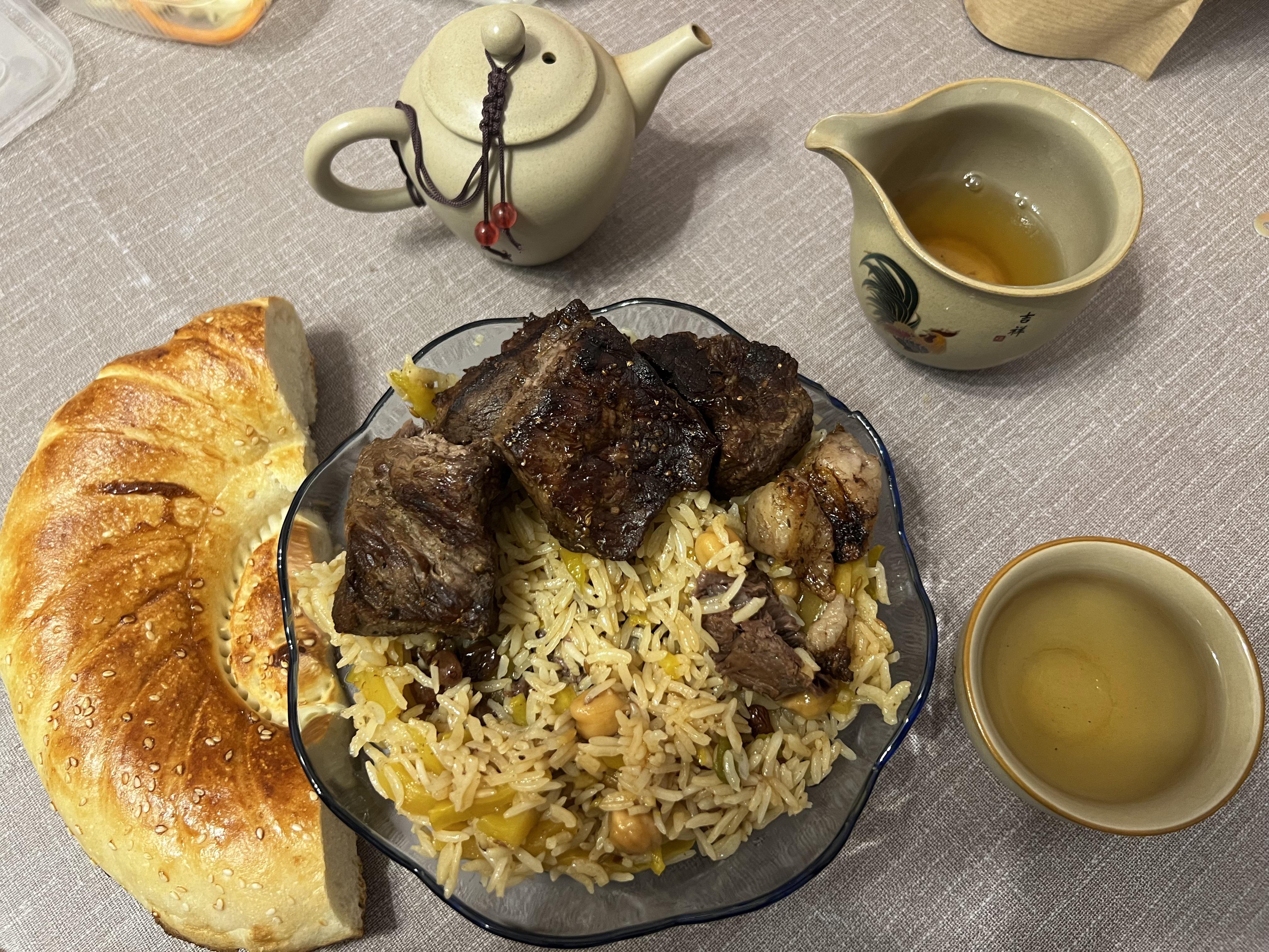 Traditional Uzbek Plov (rice, meat, vegetables on fire) and shashlik (shish kebab/ grilled meat) by gaussgunn Dinner Tonight Tonight's Dinner