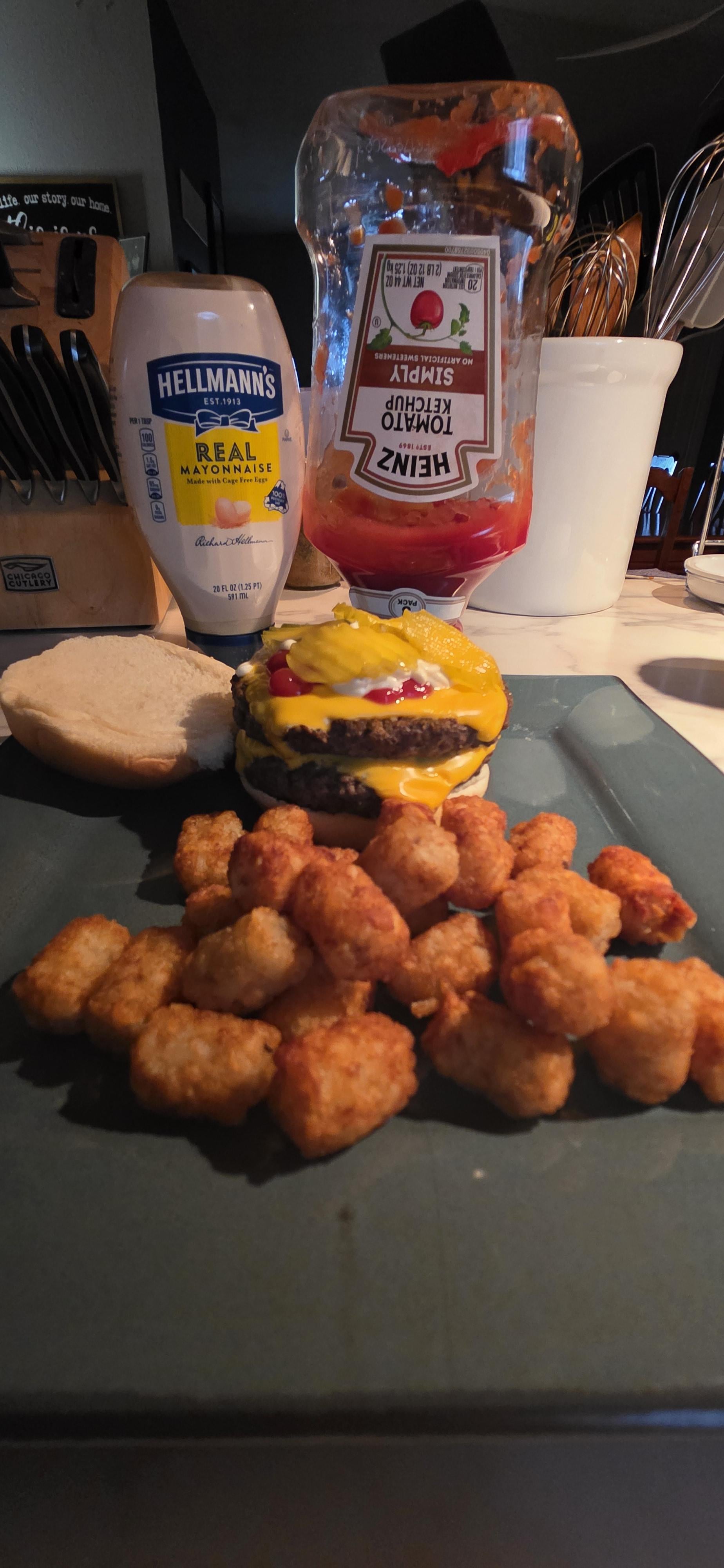Homemade double Cheeseburger with Mayo, ketchup, & pickles by BusinessSyrup Dinner Tonight Tonight's Dinner