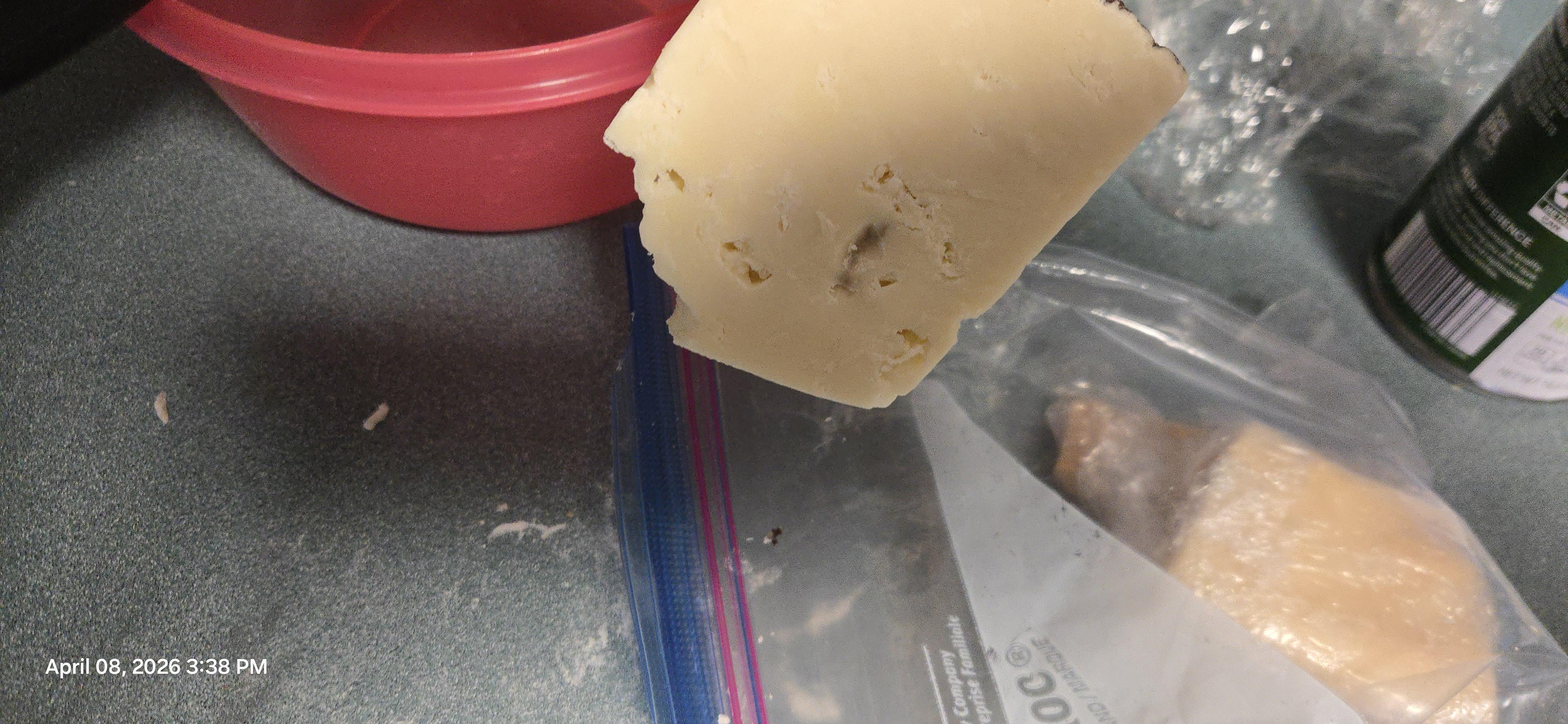 After i ordered this block of Pecorino Romano from whole foods, I noticed a dark spot on it. Is this bad, or can I still eat it? (Sorry for the mess in the photo) by OrganizationBrief966 Cheese
