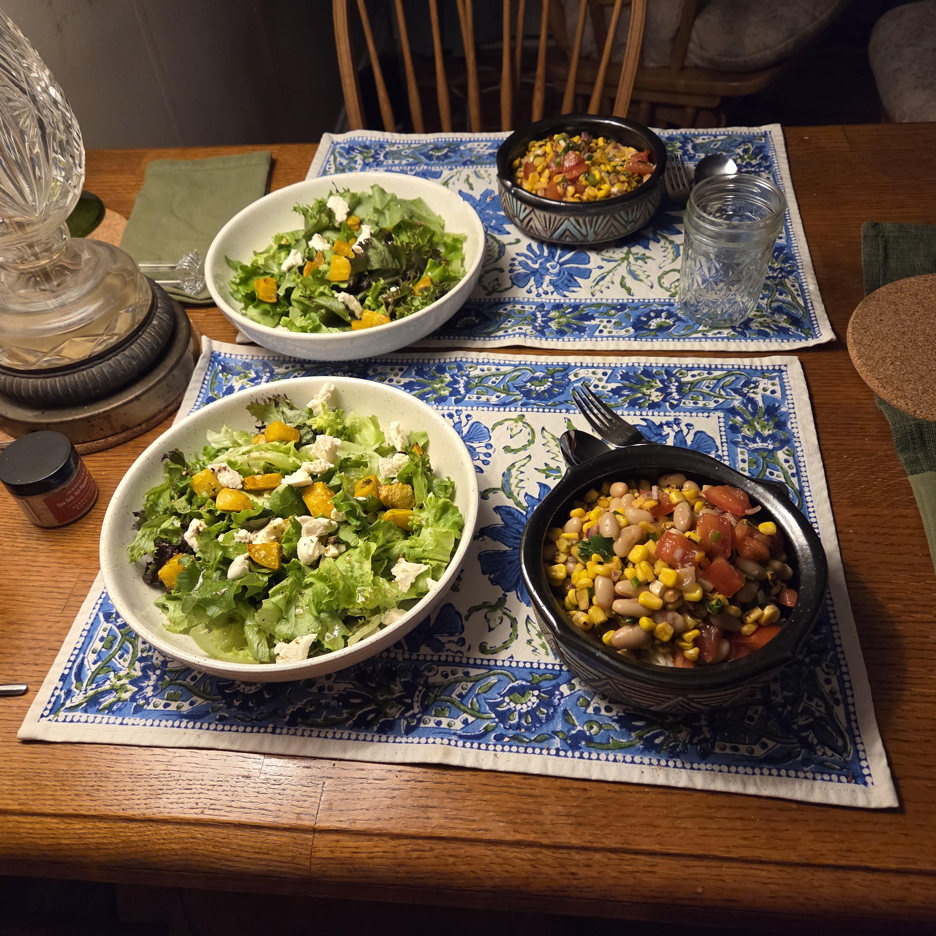 Golden beet and goat cheese and corn and bean salads with homemade vinaigrette by ghoulfriended Dinner Tonight Tonight's Dinner