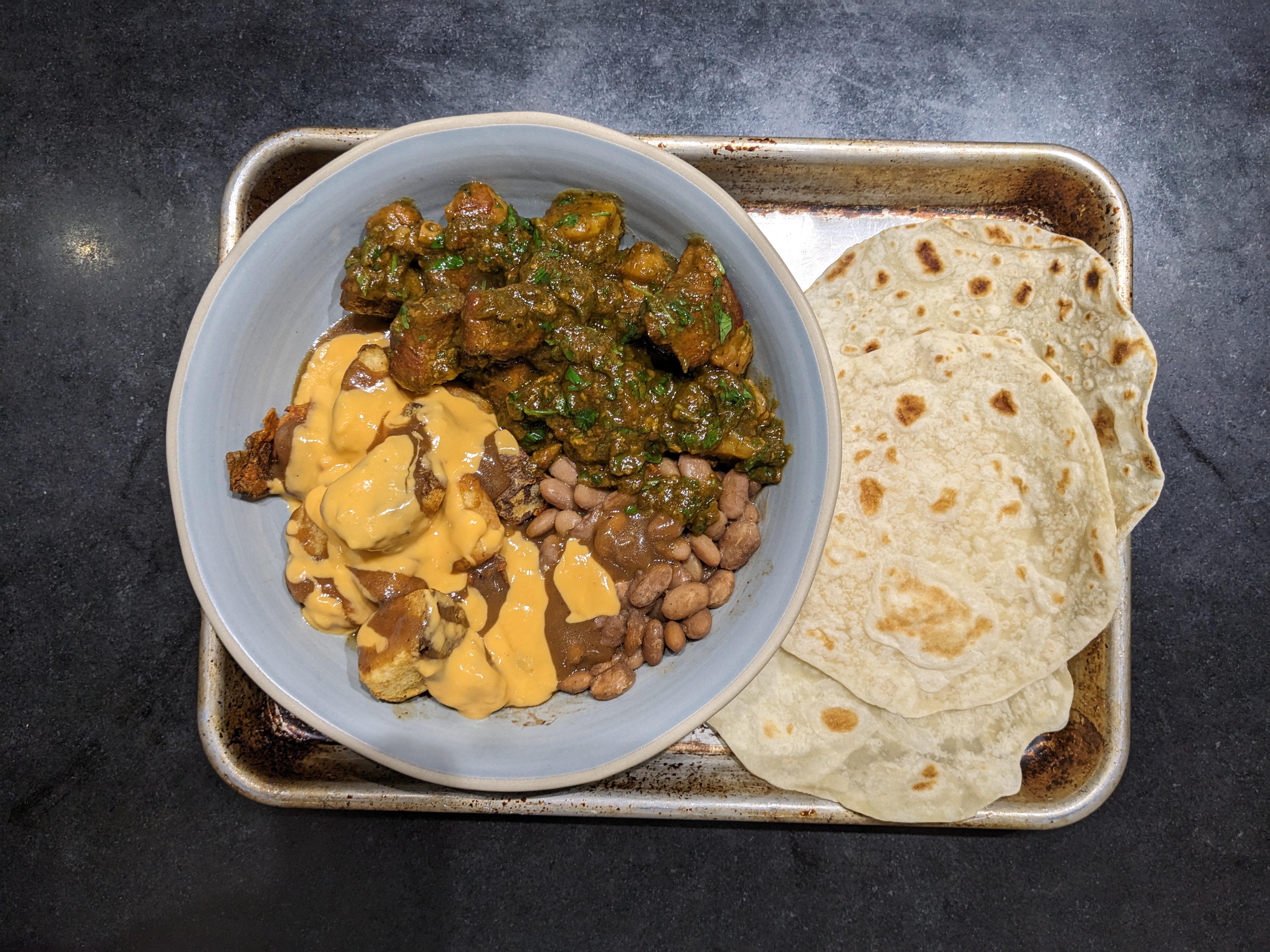 Black kale massaged with dijon and truffle with juicy chicken breast rubbed with cocoa and coffee. Cottage cheese for muscles!