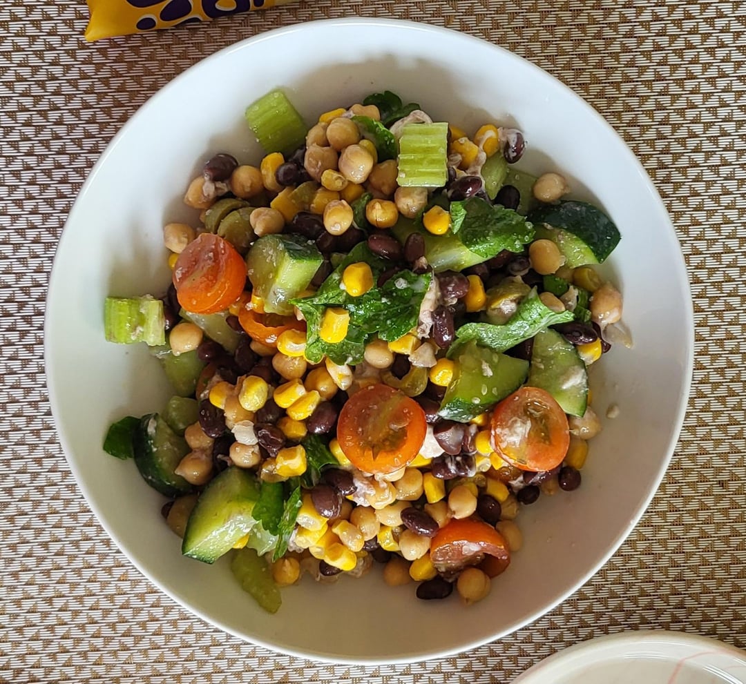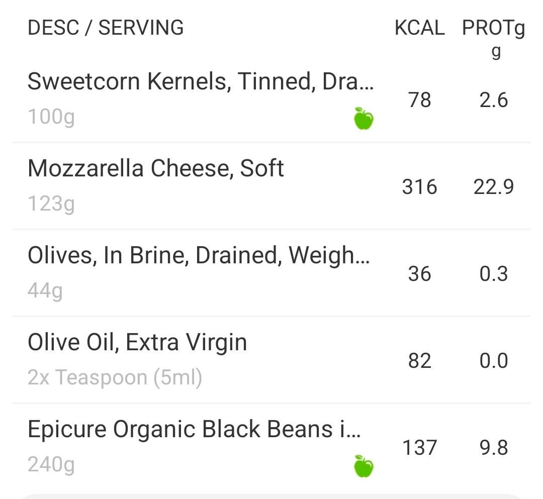 I have a hard time digesting a lot of vegetables without carbs and/or fat, so that's what I add to my salads. I made three portions, so the entire recipe is 1,017 calories. The only thing not on the ingredients list is salt, lemon juice, and parsley. I didn't find that I needed more seasoning than that, especially since I included olives and olive oil.