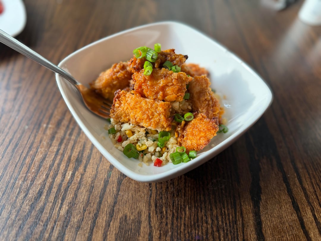 This was prepared in about 20 minutes because I meal prep the chicken in bulk and freeze it. I used Trader Joeās Stir Fry Riced Cauliflower and it was super easy. Scrambled some egg whites before adding the cauliflower rice. Iāve done another variation of this with riced hearts of palm from TJ and loved that as well. I followed H4S stir fry recipe much closer with that version.