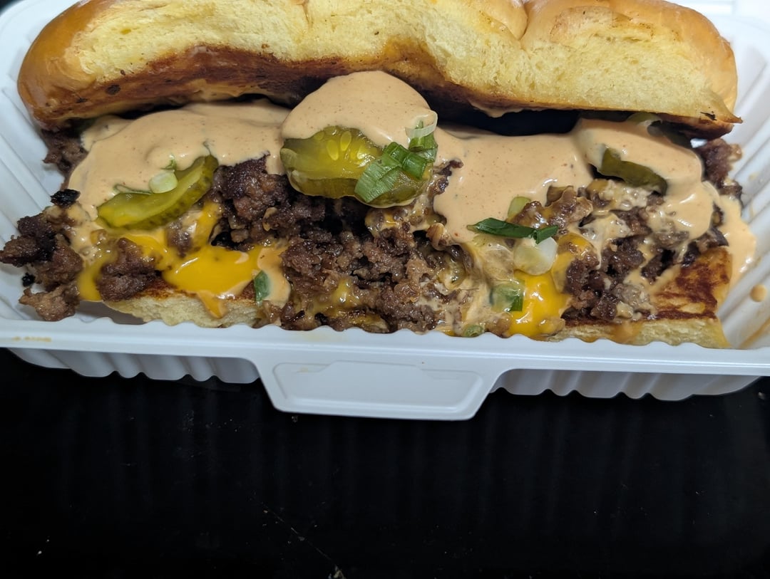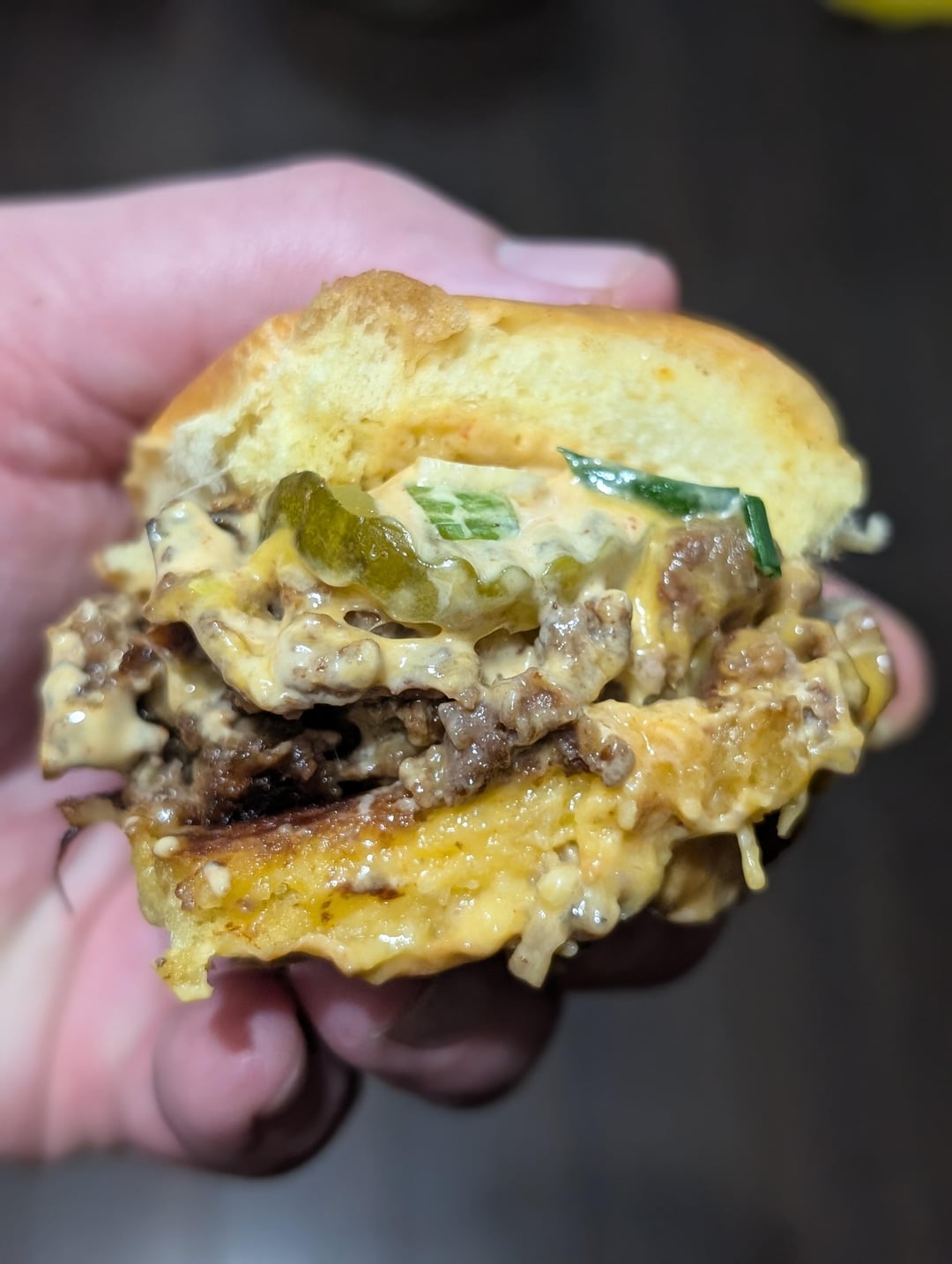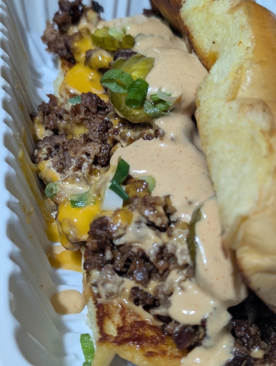 so delicious and an insane amount of cheese, could have used some more pickles. the green onions made this top tier. by sun_is_energy Food