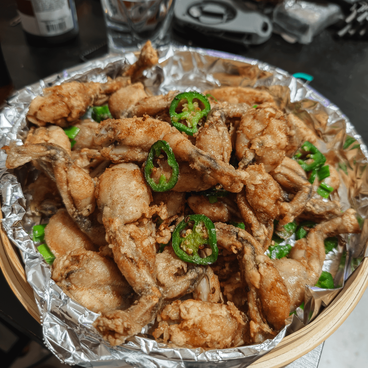 I wouldn’t mind giving them a try! I once drove down a certain road in a rainy day and there were frogs FUCKING EVERYWHERE and I felt so bad knowing I was running them over so yes lets collect a bunch and get a fry on.