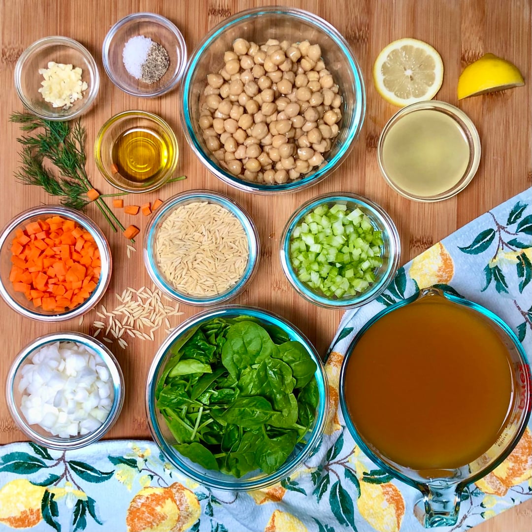 Made with all plant-based ingredients including orzo, chickpeas, carrots, celery, onion, dill and spinach in a rich lemony broth. Oil-free option. by TheCarrotUnderground Vegan Food Vegan Food Recipes Vegan Recipes
