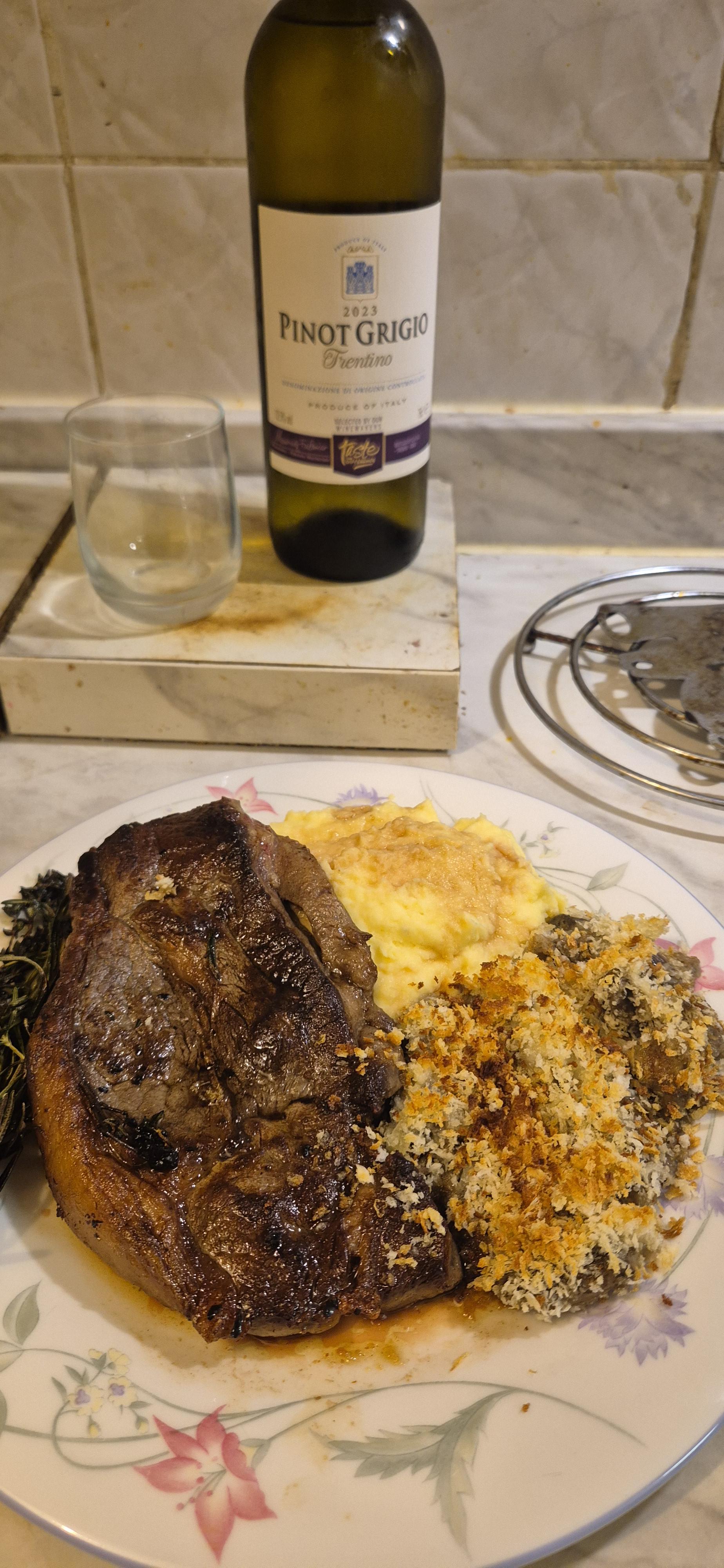 [Homemade] Steak with mashed potatoes and mushroom gratin