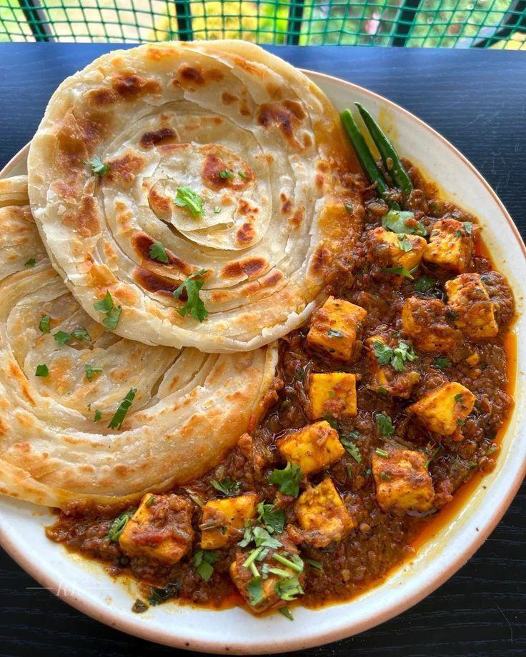 Simple dhaba-style paneer with lachha paratha—spicy, oily, and hits every time. by Key-Letterhead2375 Food Porn